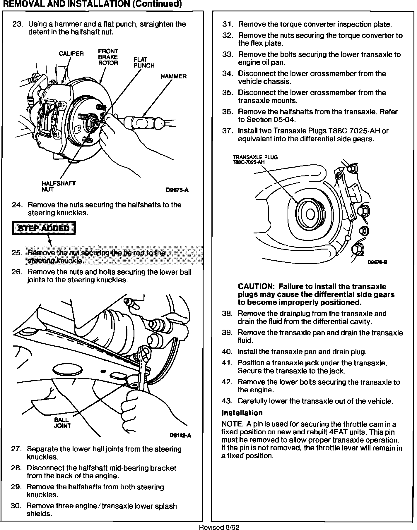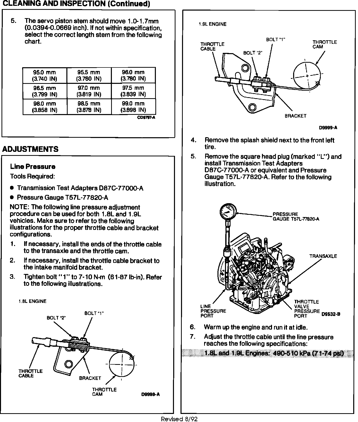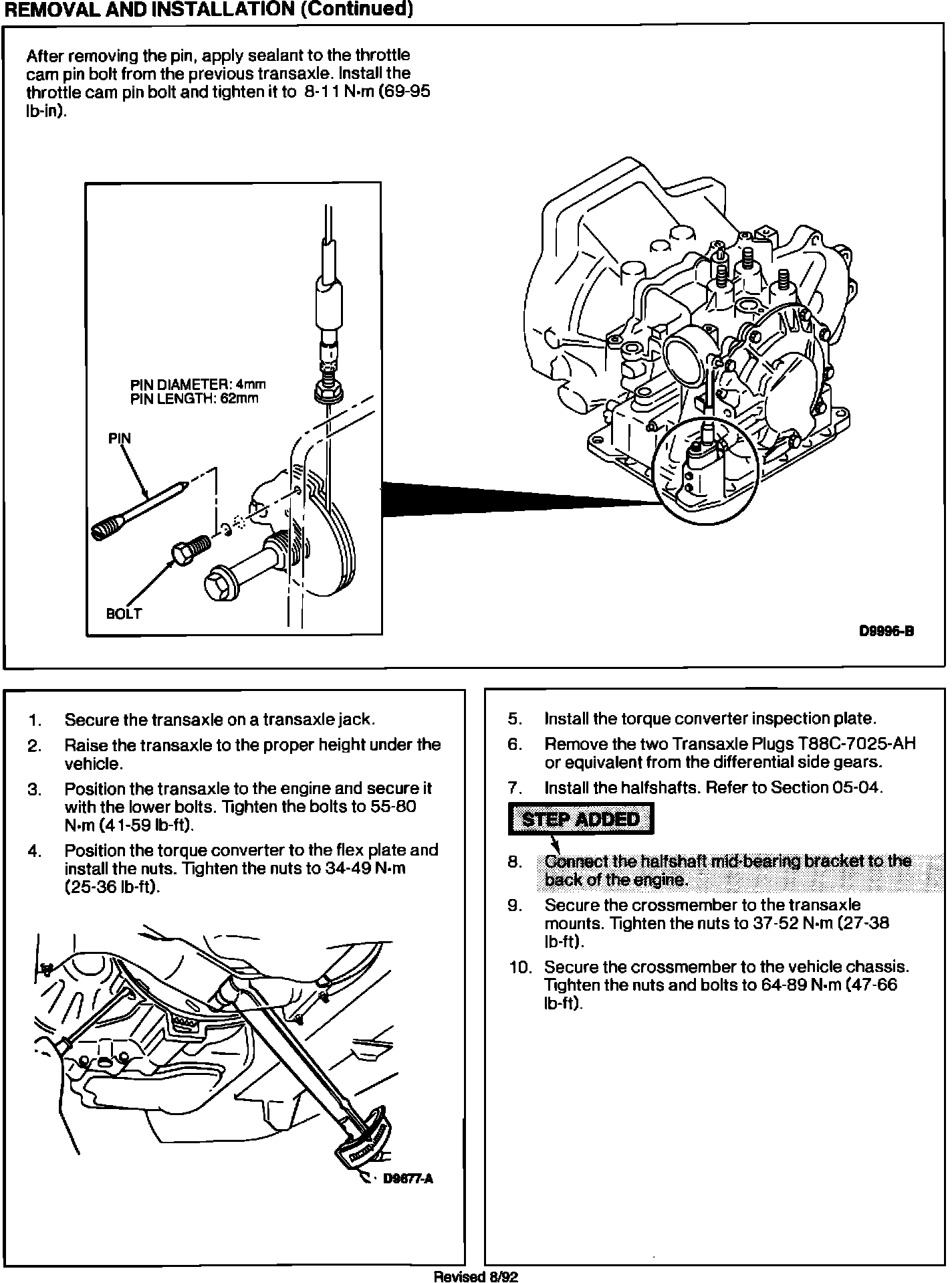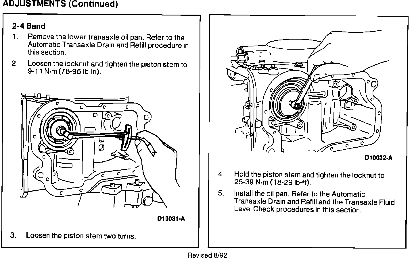 Also, the 1989-1991 Probe and 1991-1993 Capri Service Manuals are missing the 2-4 Band Adjustment Procedure. This procedure should be added to Automatic Transaxle, Adjustments.