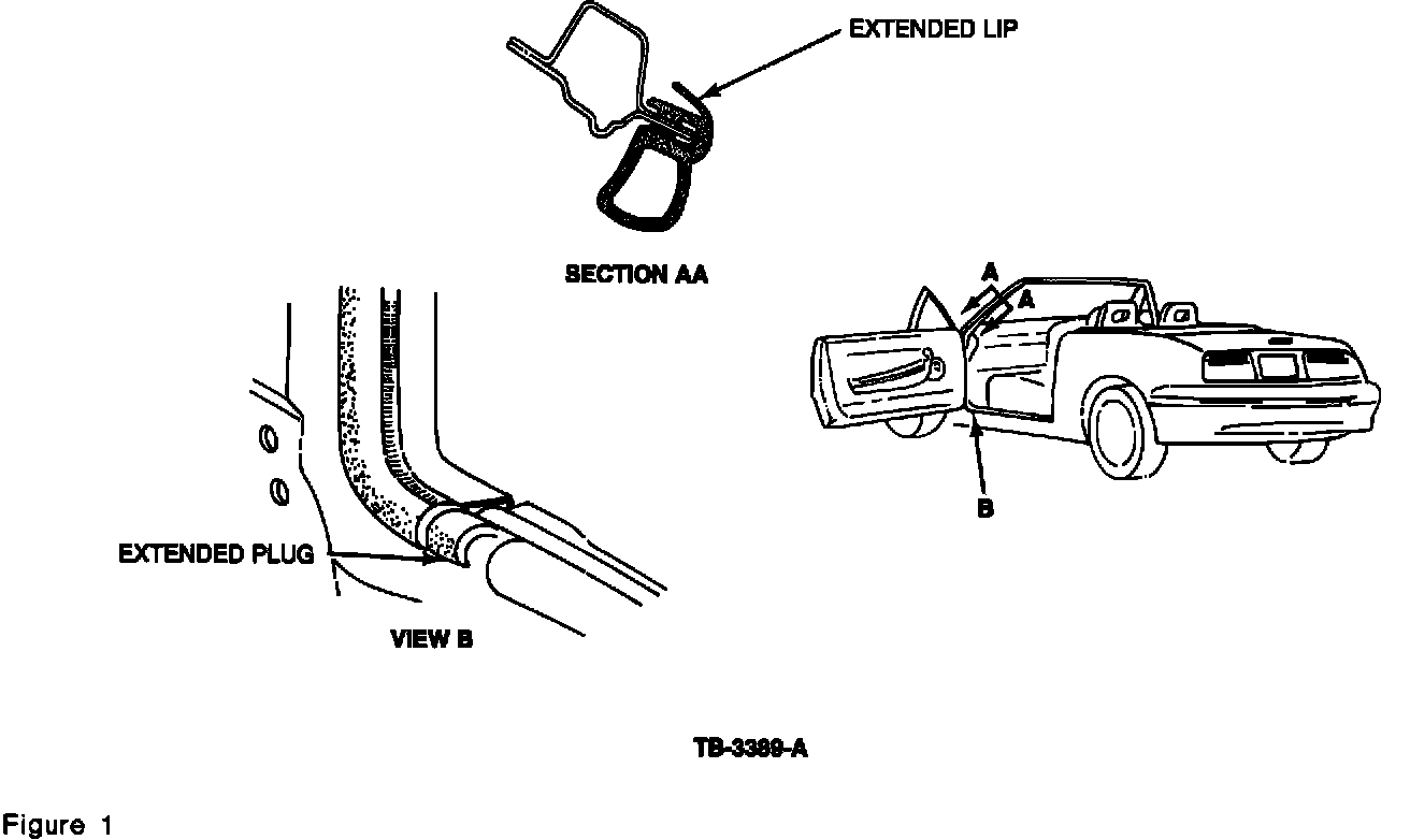 The new level windshield header weatherstrip provides improved sealing with the following features, Figure 1: