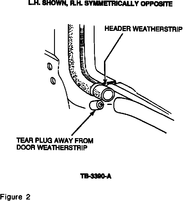 2. Tear plug away from the ends of door weatherstrips, Figure 2.