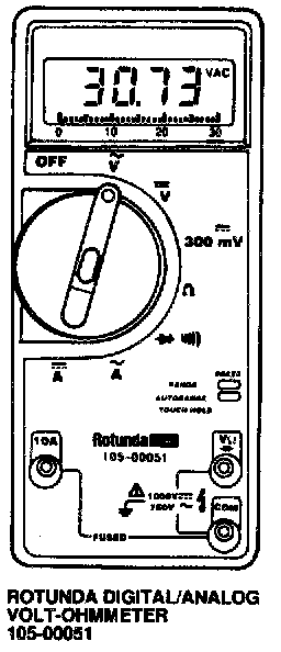 - Rotunda Digital/Analog Volt-Ohmmeter 105-00051 or equivalent.