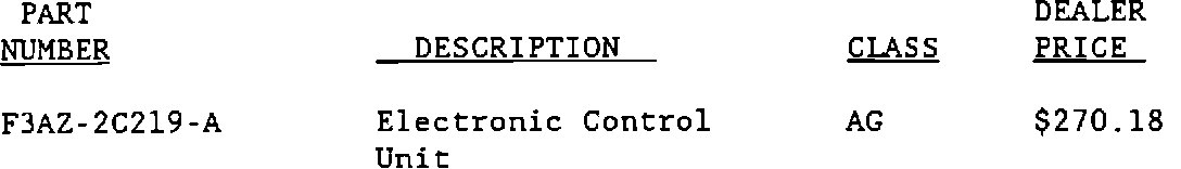 Some Electronic Control Units, part number F1VY-2C219-A, in dealer stock may be defective. Dealers are requested to inspect the Electronic Control Units color: