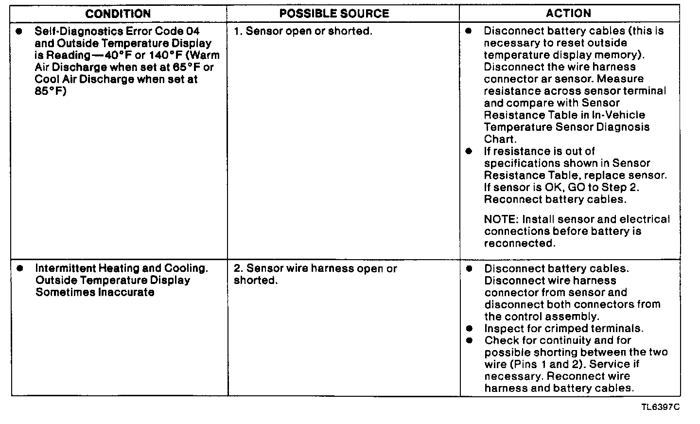 APPROXIMATE TEMPERATURE /SENSOR RESISTANCE ACCEPTABLE RANGE