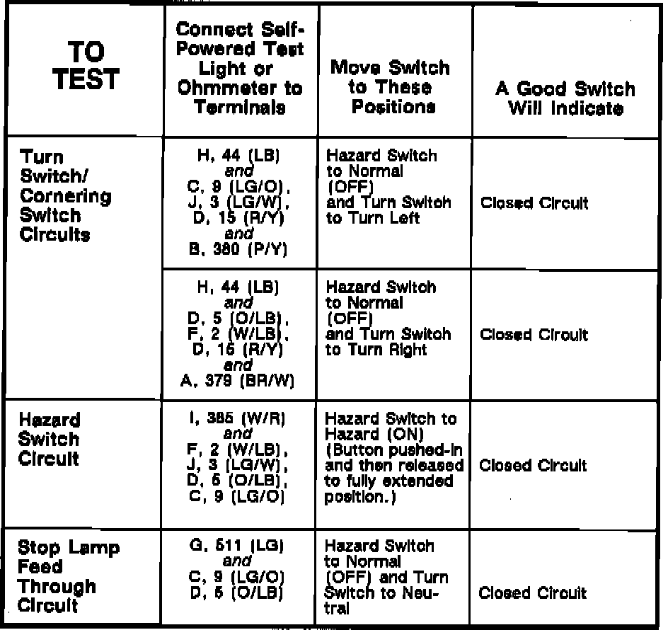 Turn Signal Switch: Testing and Inspection