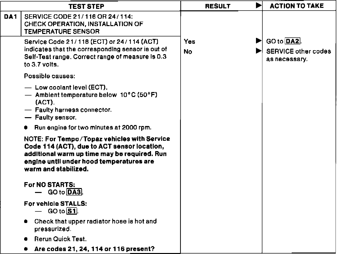 DA1 - Code 21/116 or 24/114: Check Temperature Sensor