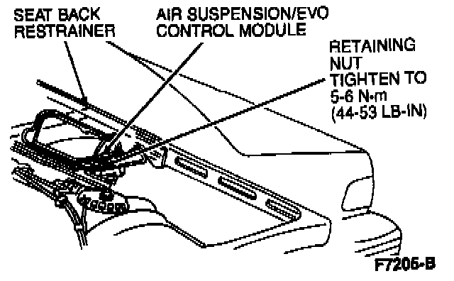 2. Remove two nuts retaining module to sheet metal on seat back restrainer.