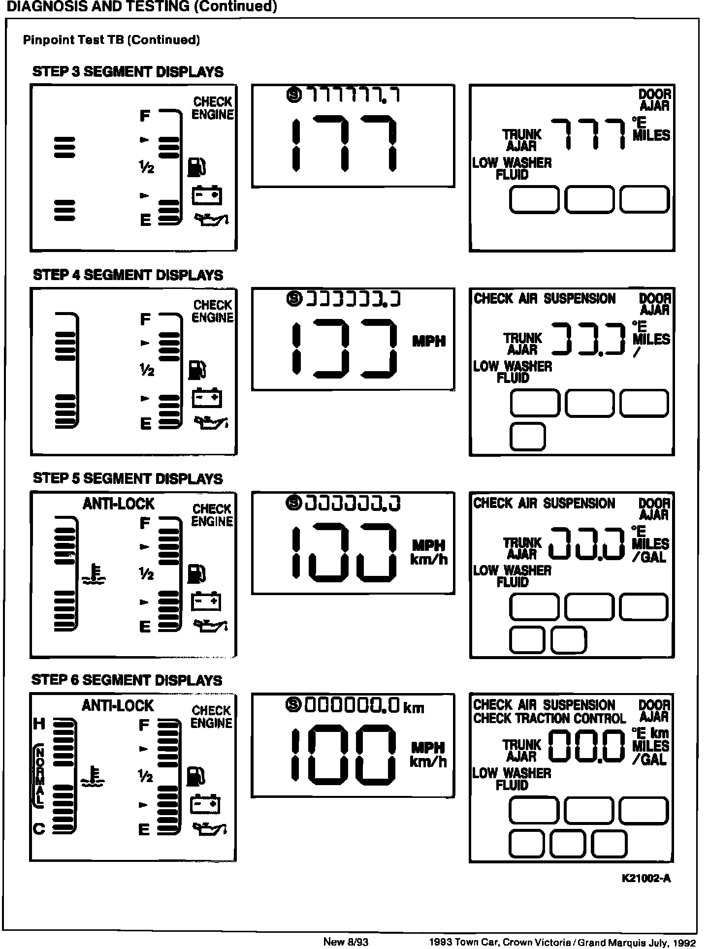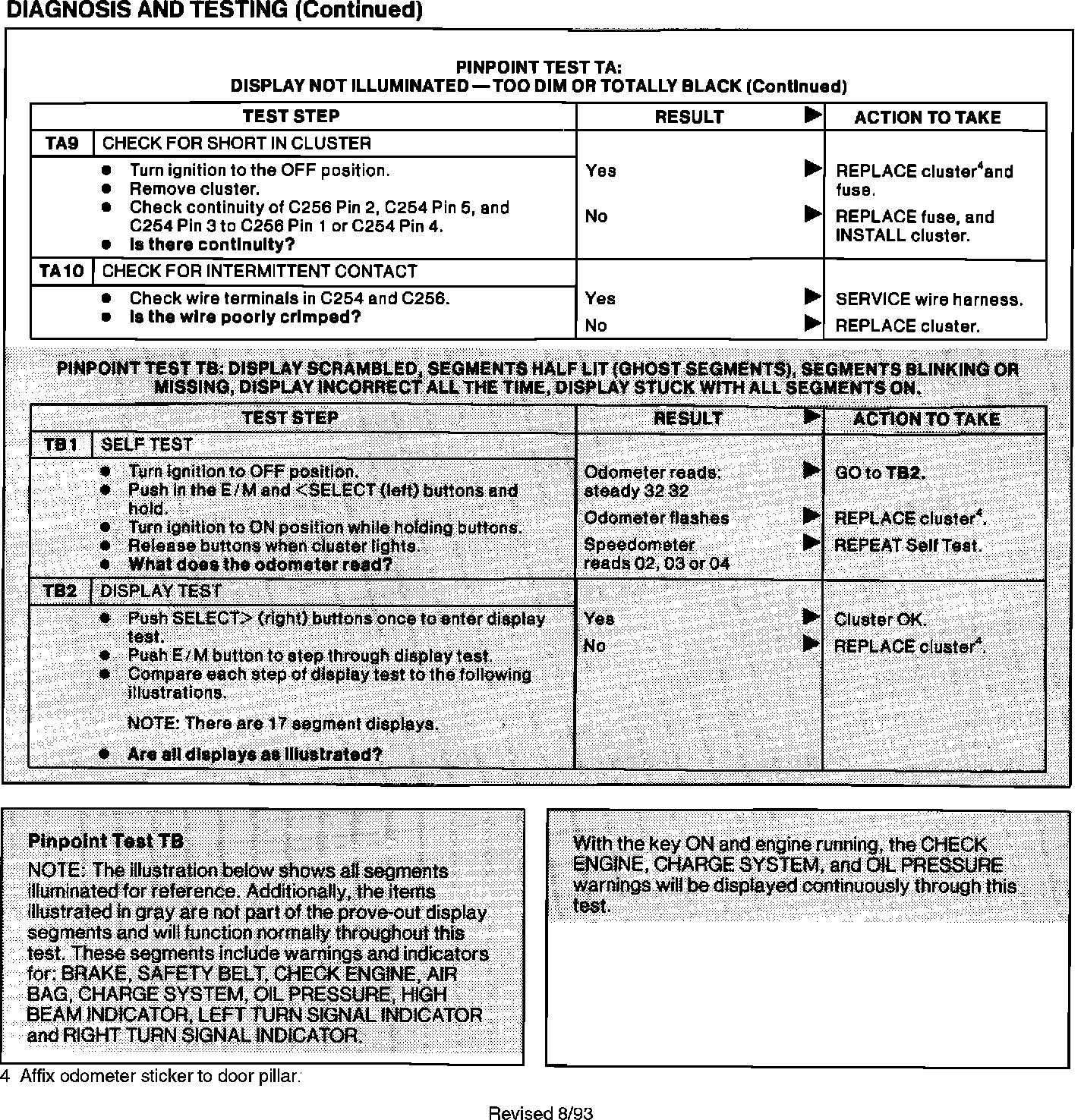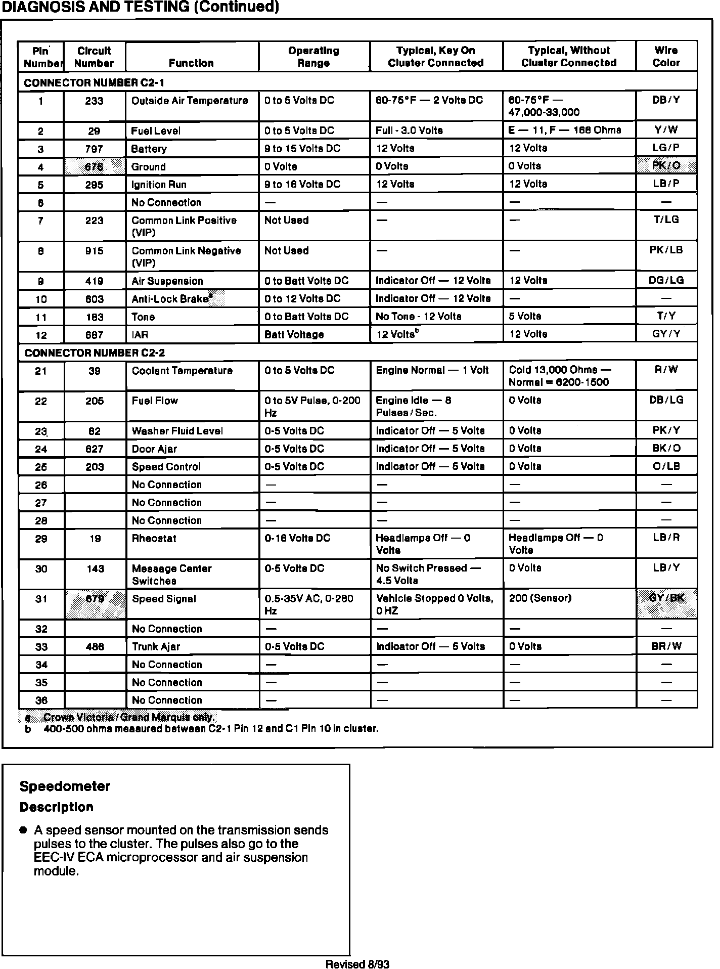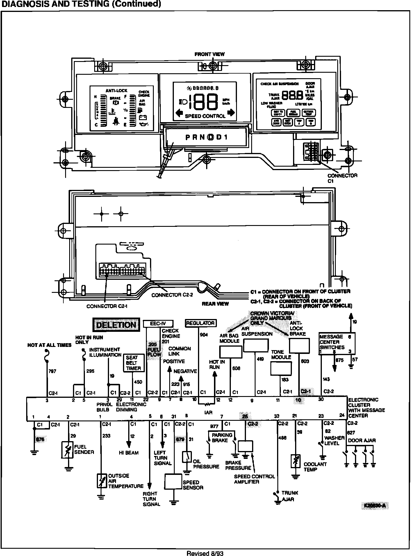 Instrument Cluster-Electronic, Section 13-01A, requires revision of schematics and pinpoint tests. The 1992 and 1993 Town Car/Crown Victoria/Grand Marquis Service Manuals are affected on the following pages: