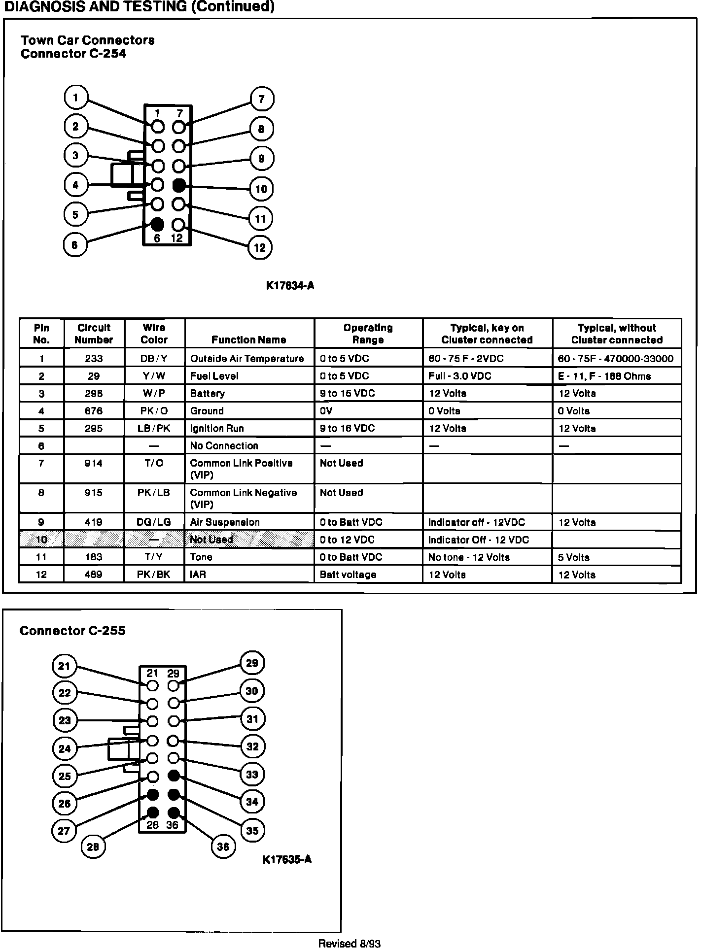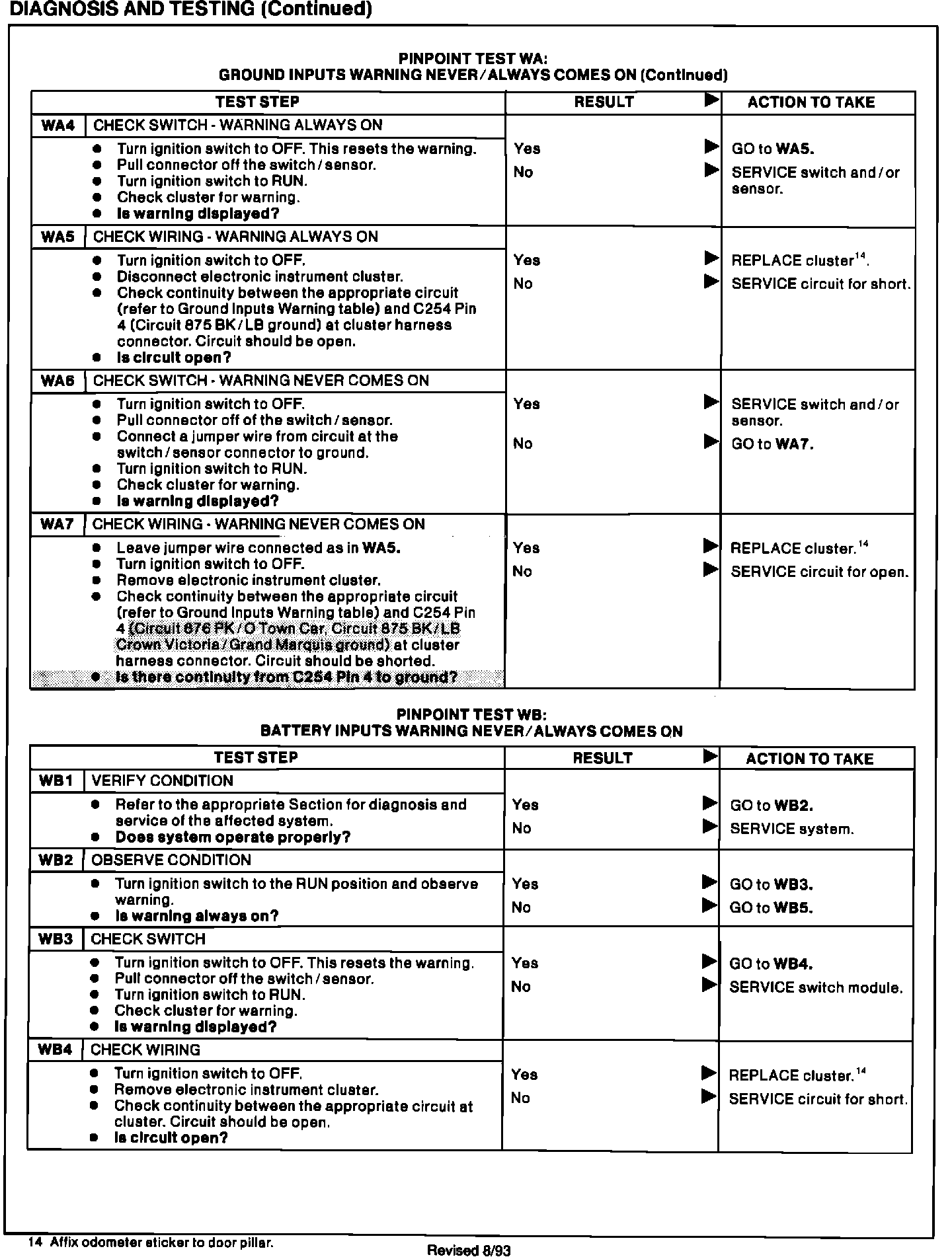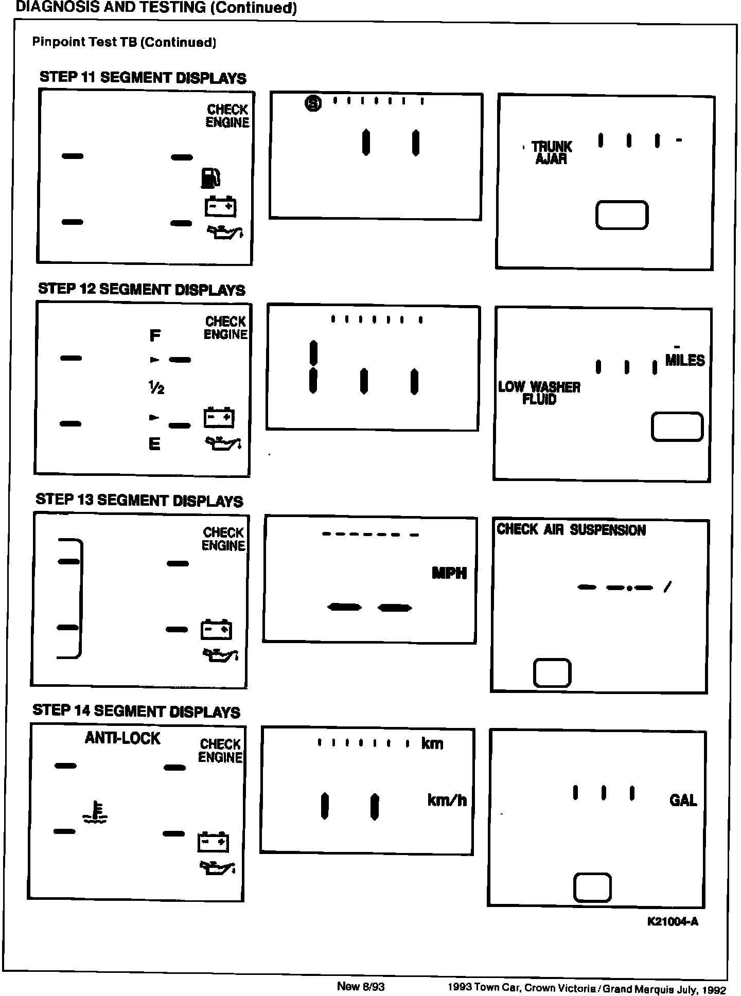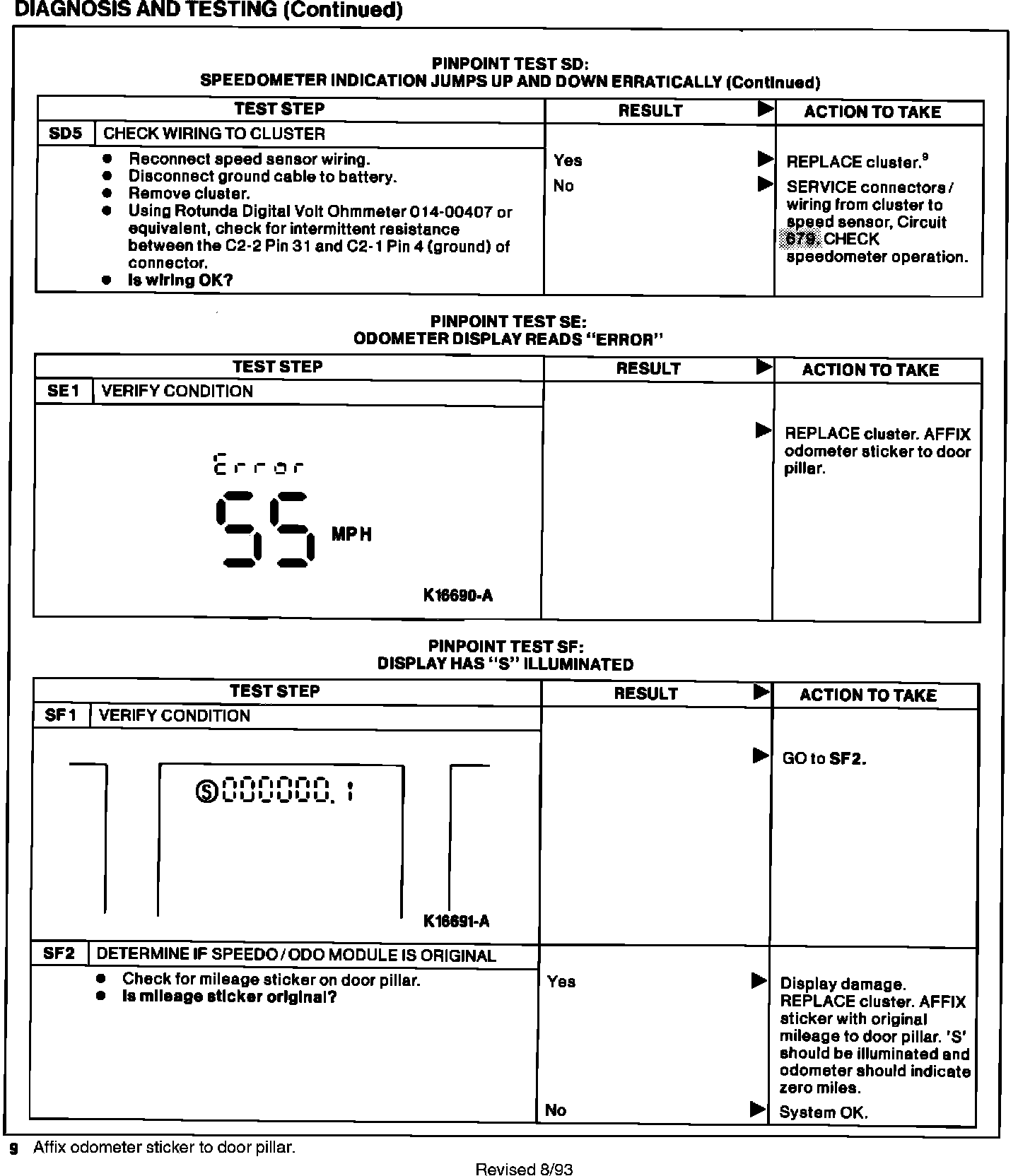 Instrument Cluster-Electronic, Section 13-01A, requires revision of schematics and pinpoint tests. The 1992 and 1993 Town Car/Crown Victoria/Grand Marquis Service Manuals are affected on the following pages:
