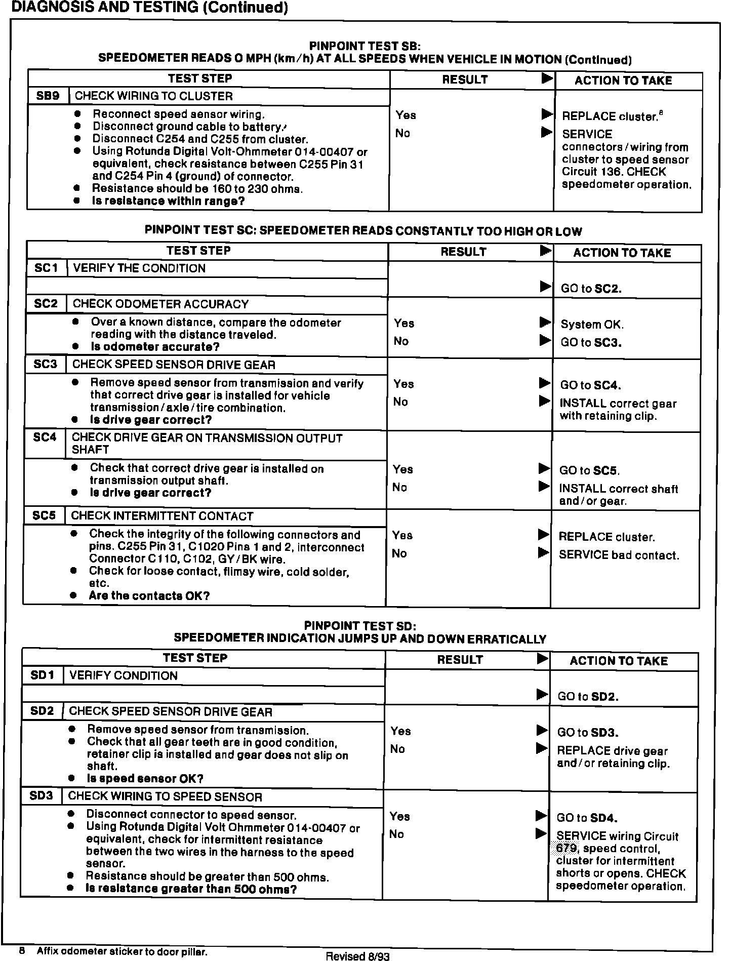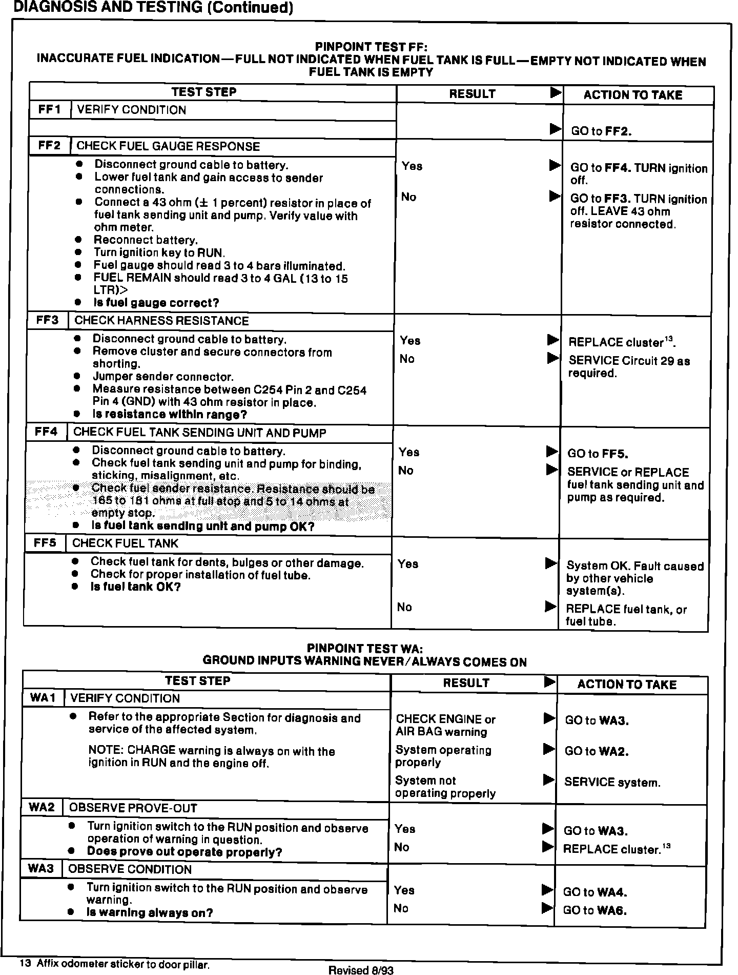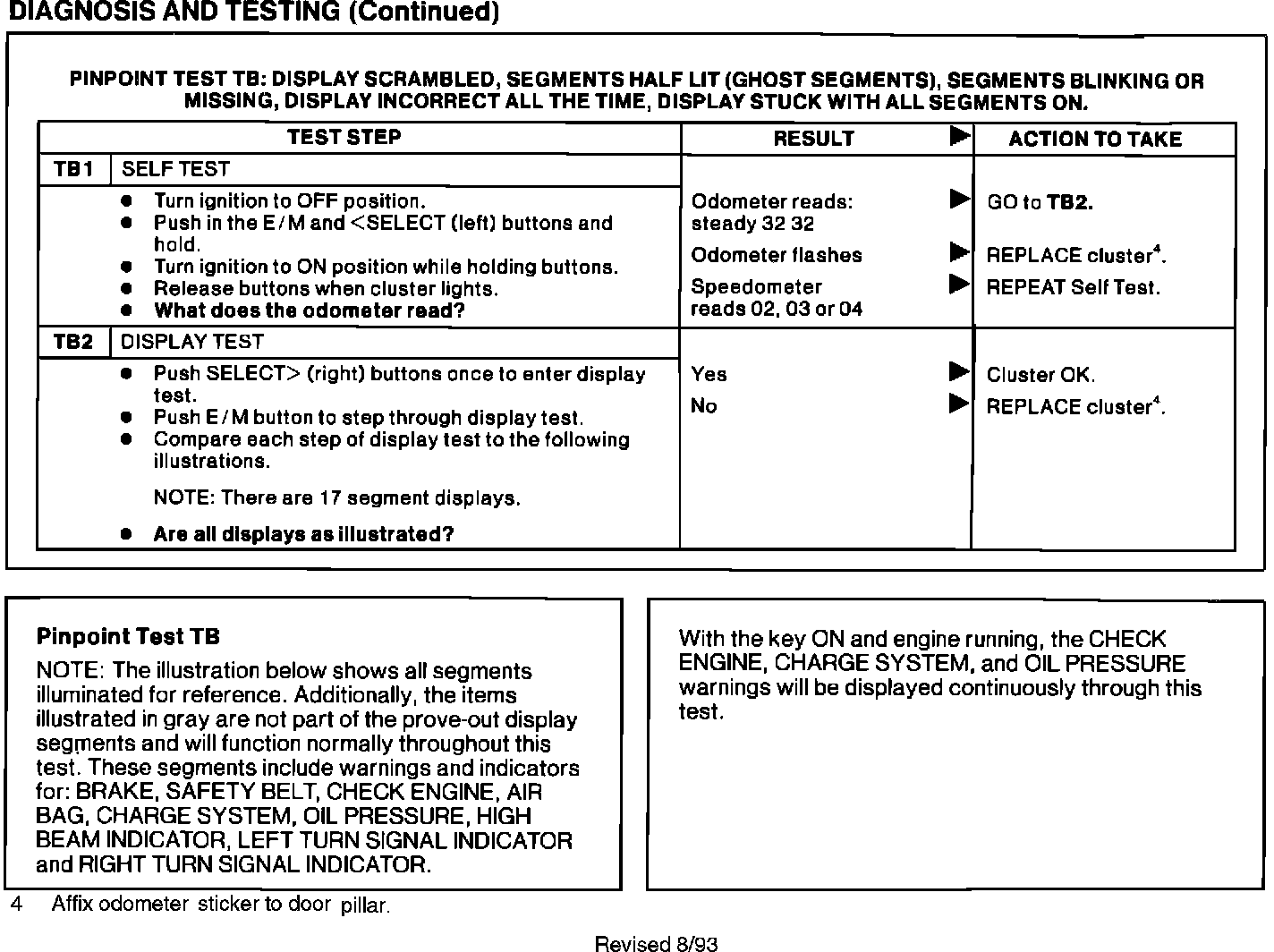 ^ SERVICE MANUAL - 1993 - SECTION 13-01A - INSTRUMENT CLUSTER-ELECTRONIC - SCHEMATICS AND PINPOINT TESTS REVISED