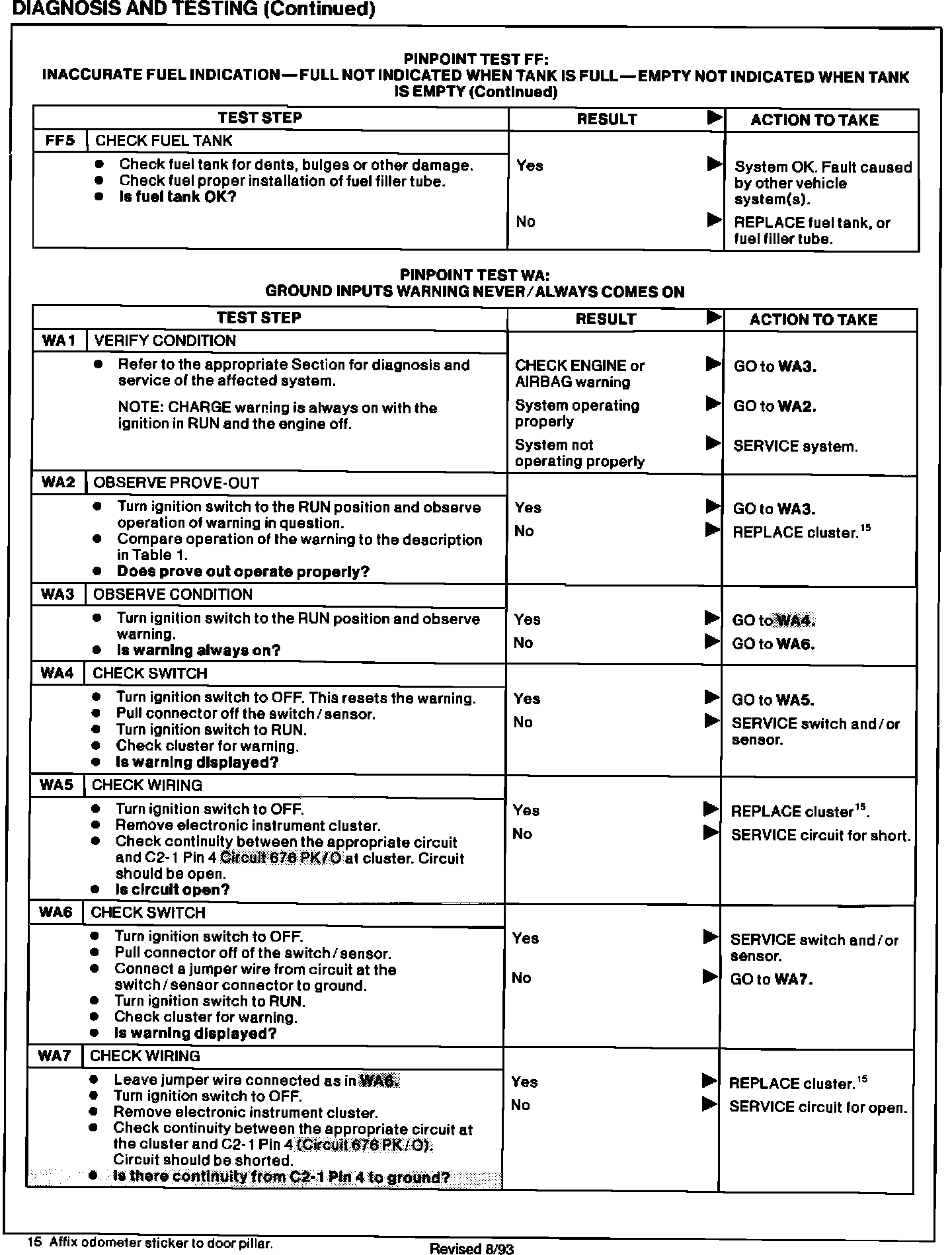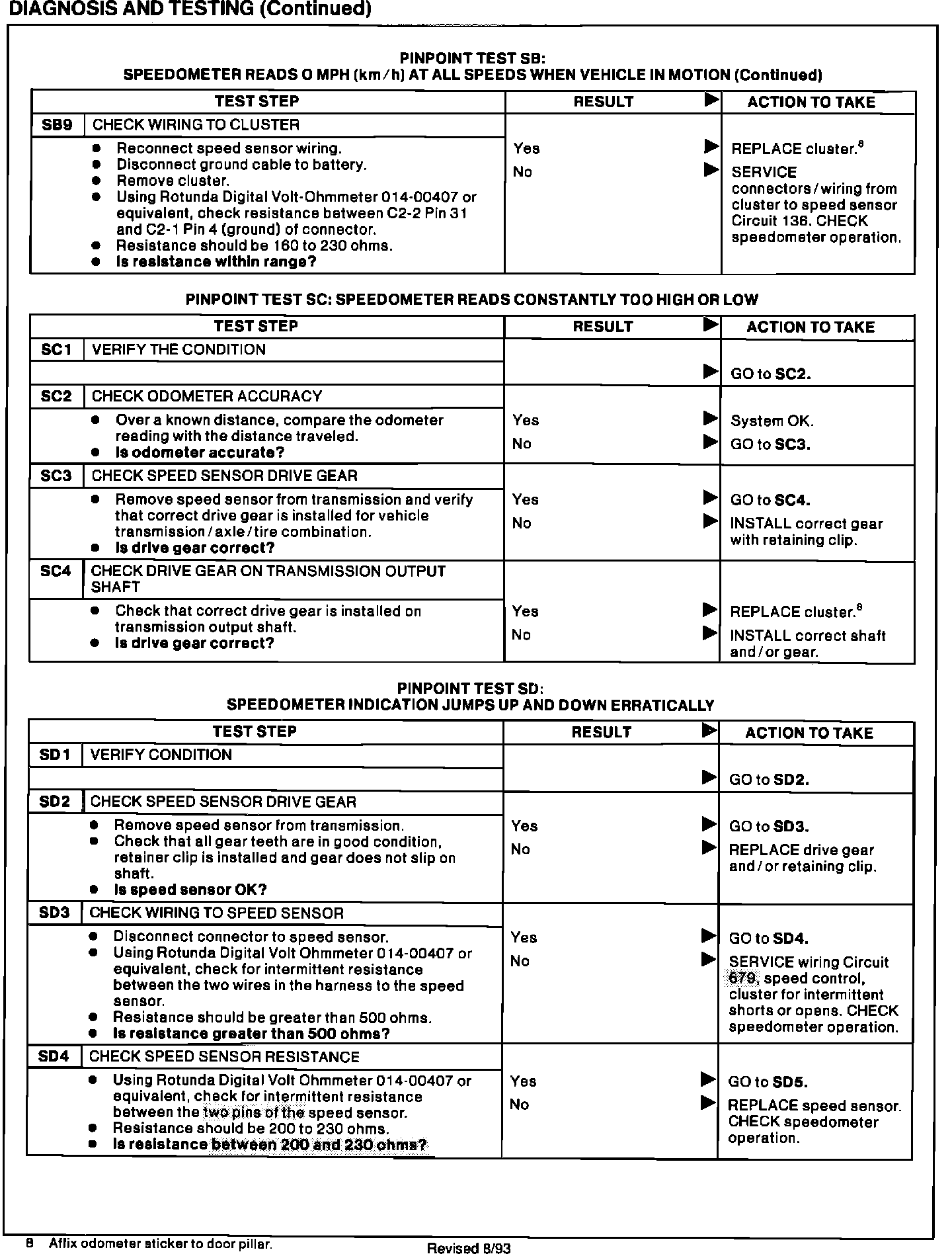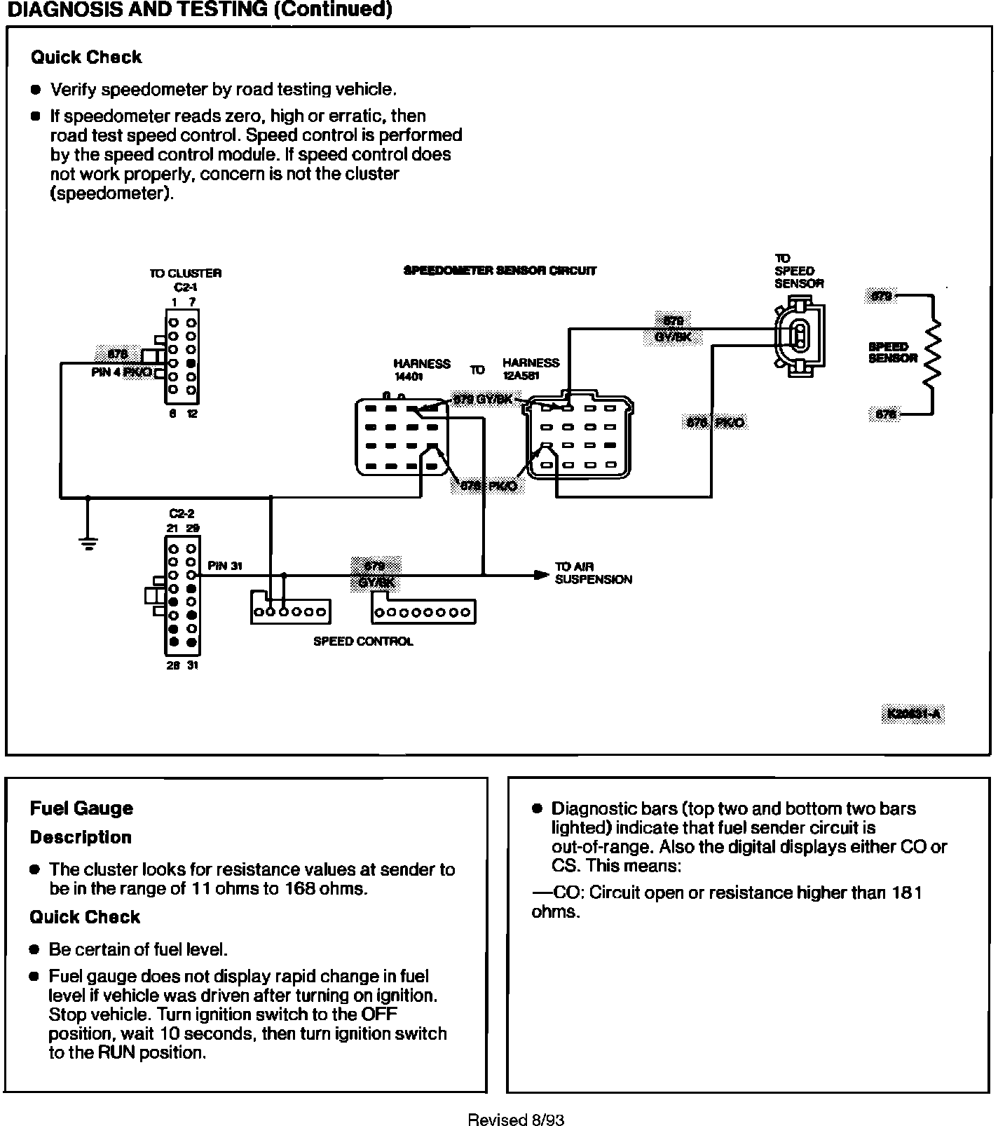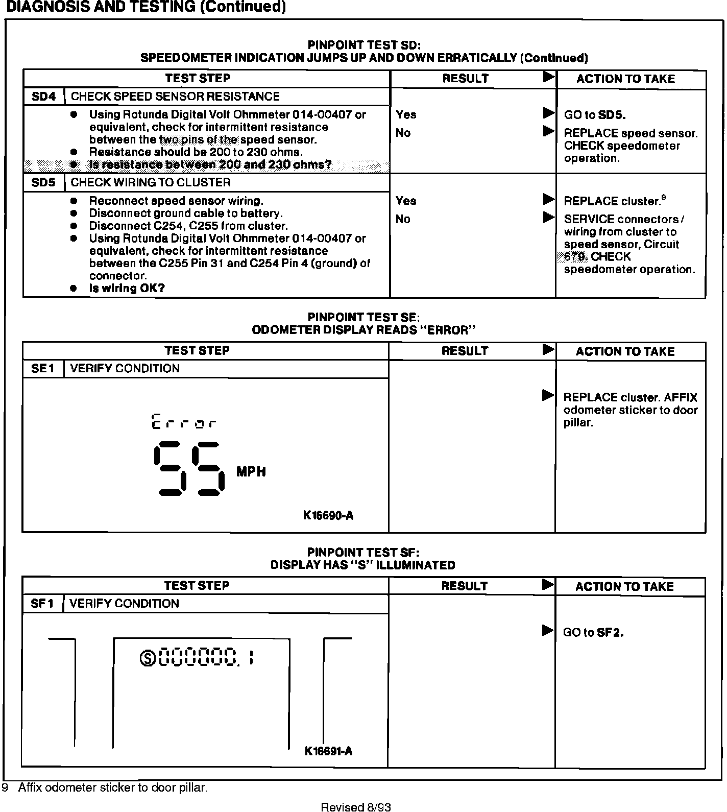 ^ SERVICE MANUAL - 1993 - SECTION 13-01A - INSTRUMENT CLUSTER-ELECTRONIC - SCHEMATICS AND PINPOINT TESTS REVISED