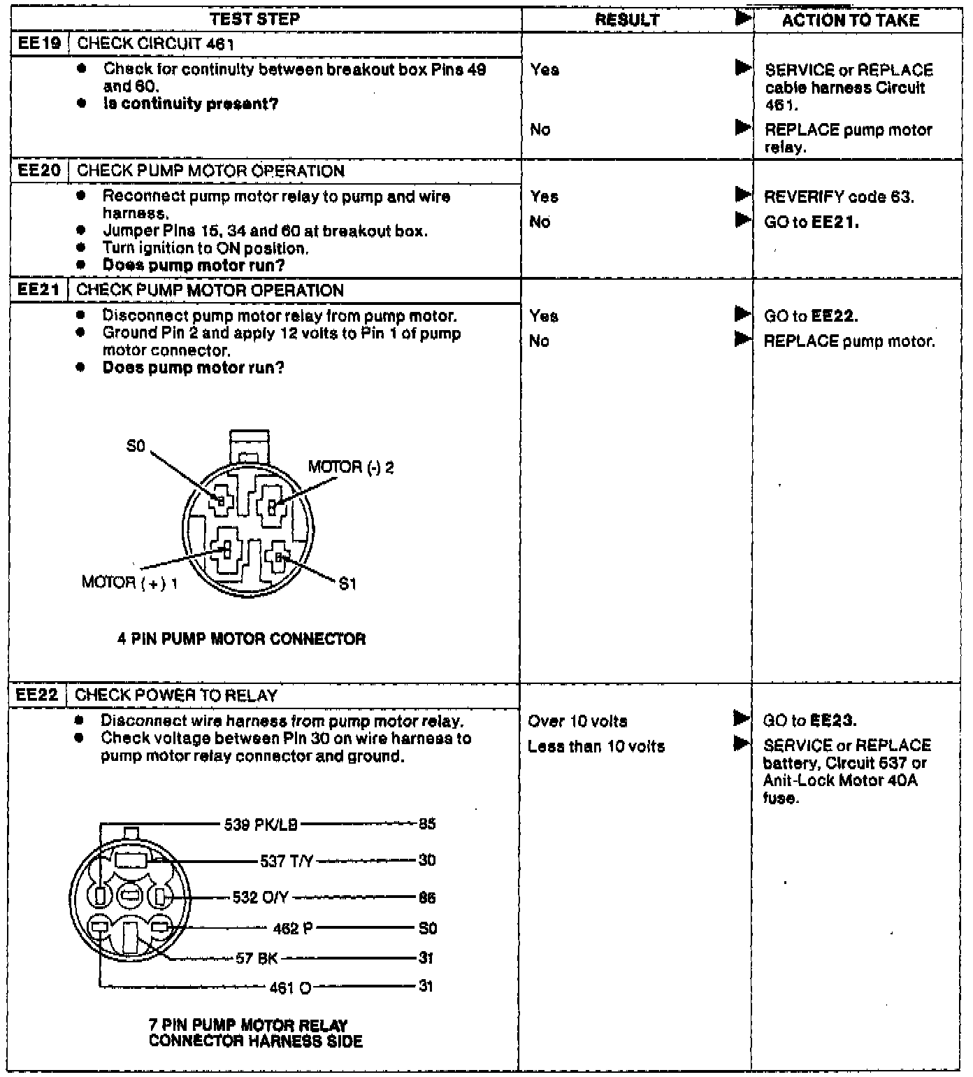 Fig. 91 Test EE, Fluid Level Indicator/Pedal Travel Switch/Motor Pump Diagnosis. Taurus/Sable: