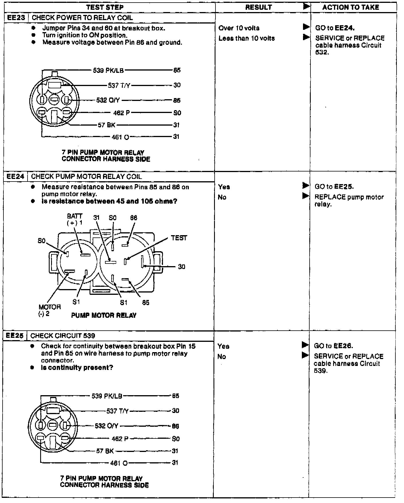Fig. 91 Test EE, Fluid Level Indicator/Pedal Travel Switch/Motor Pump Diagnosis. Taurus/Sable: