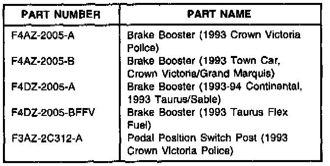 ON POLICE VEHICLES ONLY, THE PEDAL POSITION SWITCH POST MUST BE REPLACED WITH THE BRAKE BOOSTER.