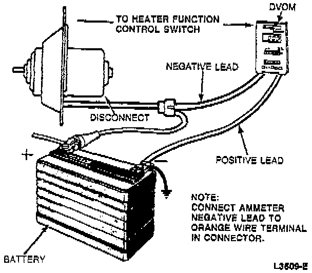 1. Connect a 0.0-30.0 ampere ammeter, ground the negative lead of the blower motor and measure the motor current draw at the high-speed setting.