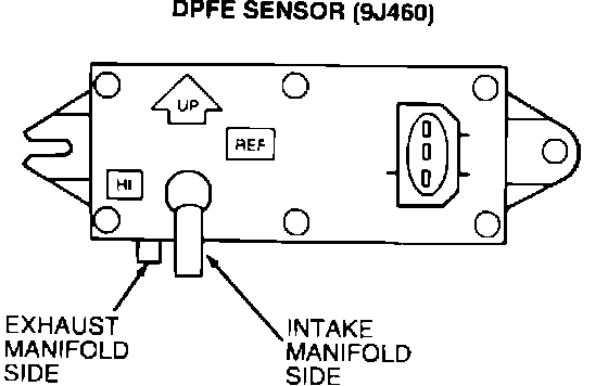 The Differential Pressure Feedback EGR (DPFE) sensor converts varying exhaust pressure signals into a proportional analog voltage. The pressure signals are received through two hoses: