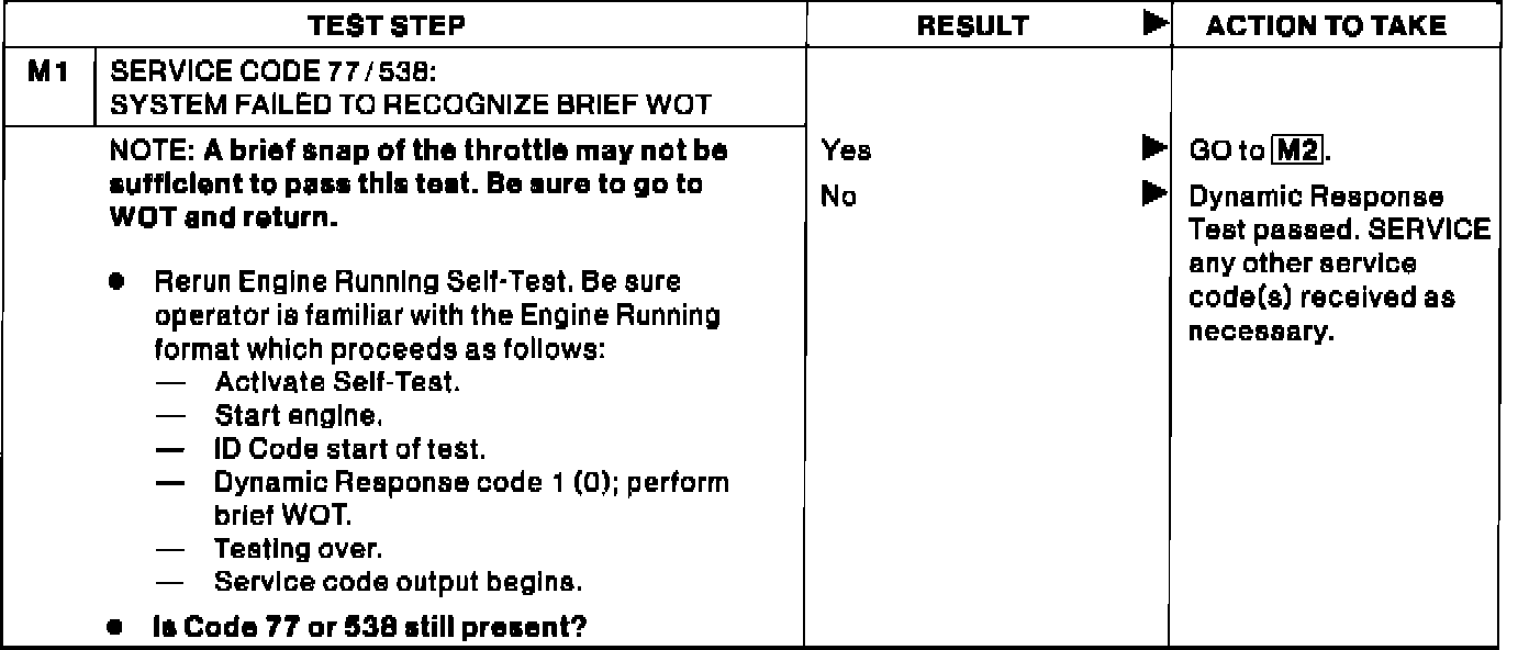 M1 - Service Code 77/538: System Failed to Recognize Brief WOT