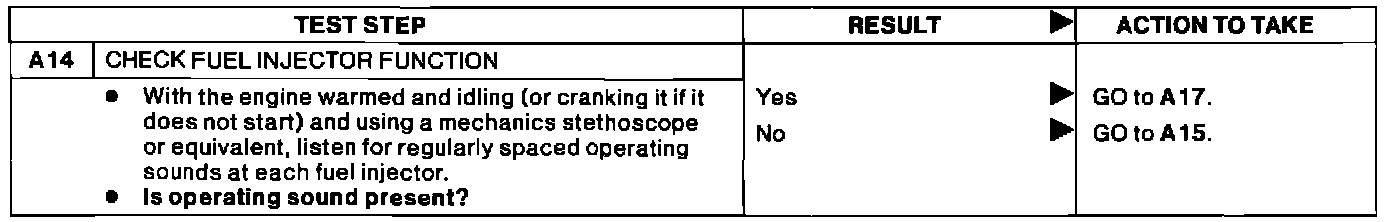 A14 - Check Fuel Injector Function: