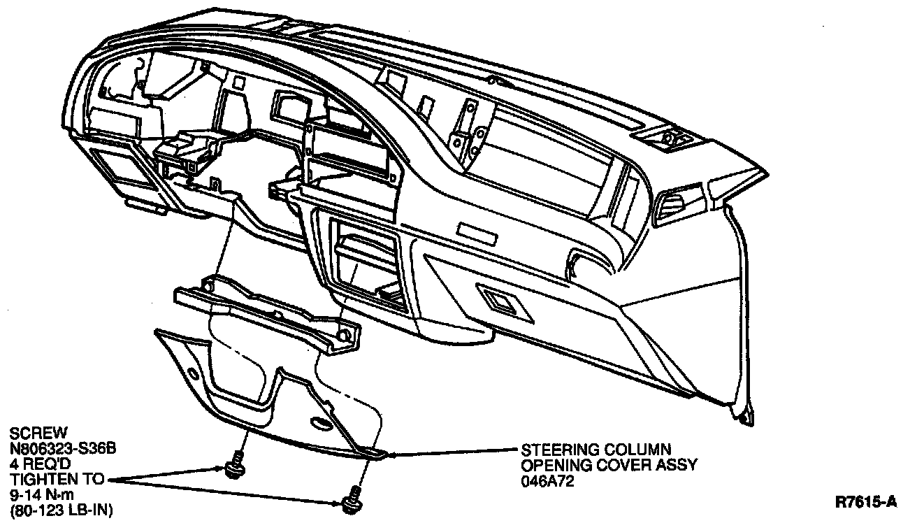 12. Remove one bolt at steering column opening attaching instrument panel to brace.