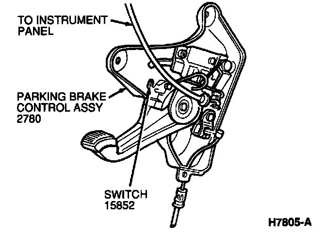 8. Disconnect park brake release cable and wiring connector from park brake and ignition switch wiring connector.