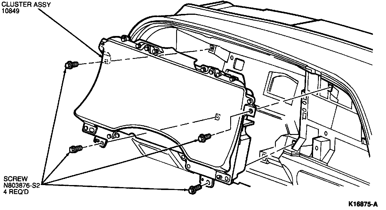 11. Remove four retaining screws from cluster, disconnect wiring and remove.