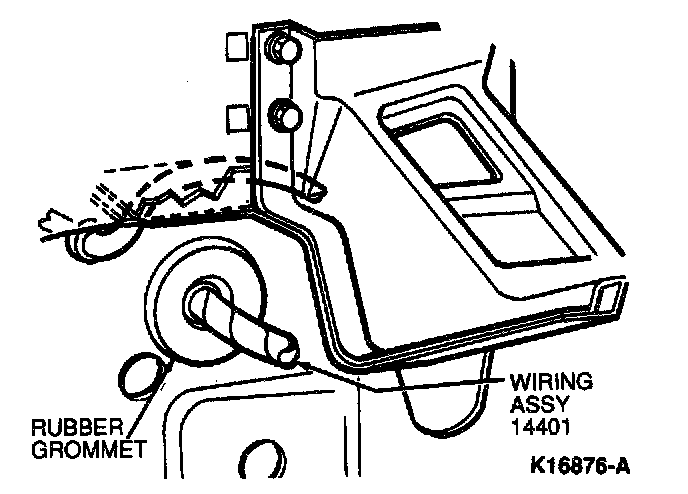 17. Disconnect wires of main wire loom in engine compartment. Disengage rubber grommet from dash panel then feed wiring through hole in dash panel into passenger compartment.