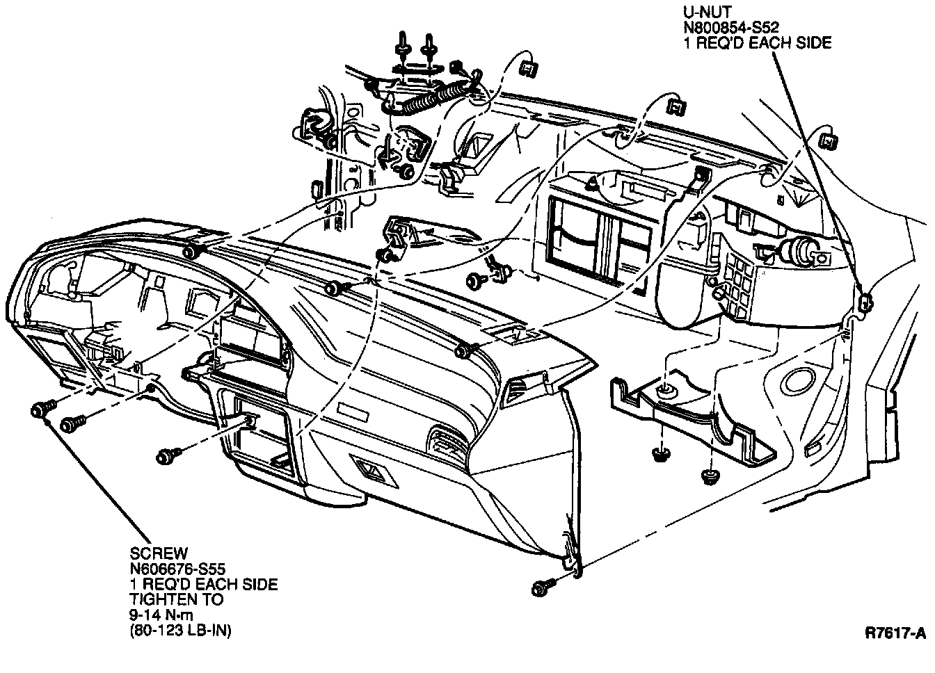 13. Remove one instrument panel brace retaining bolt (under the radio area).