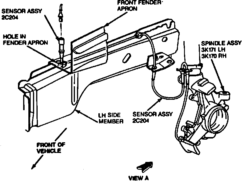 1. Disconnect wheel sensor electrical connector, located in engine compartment.
