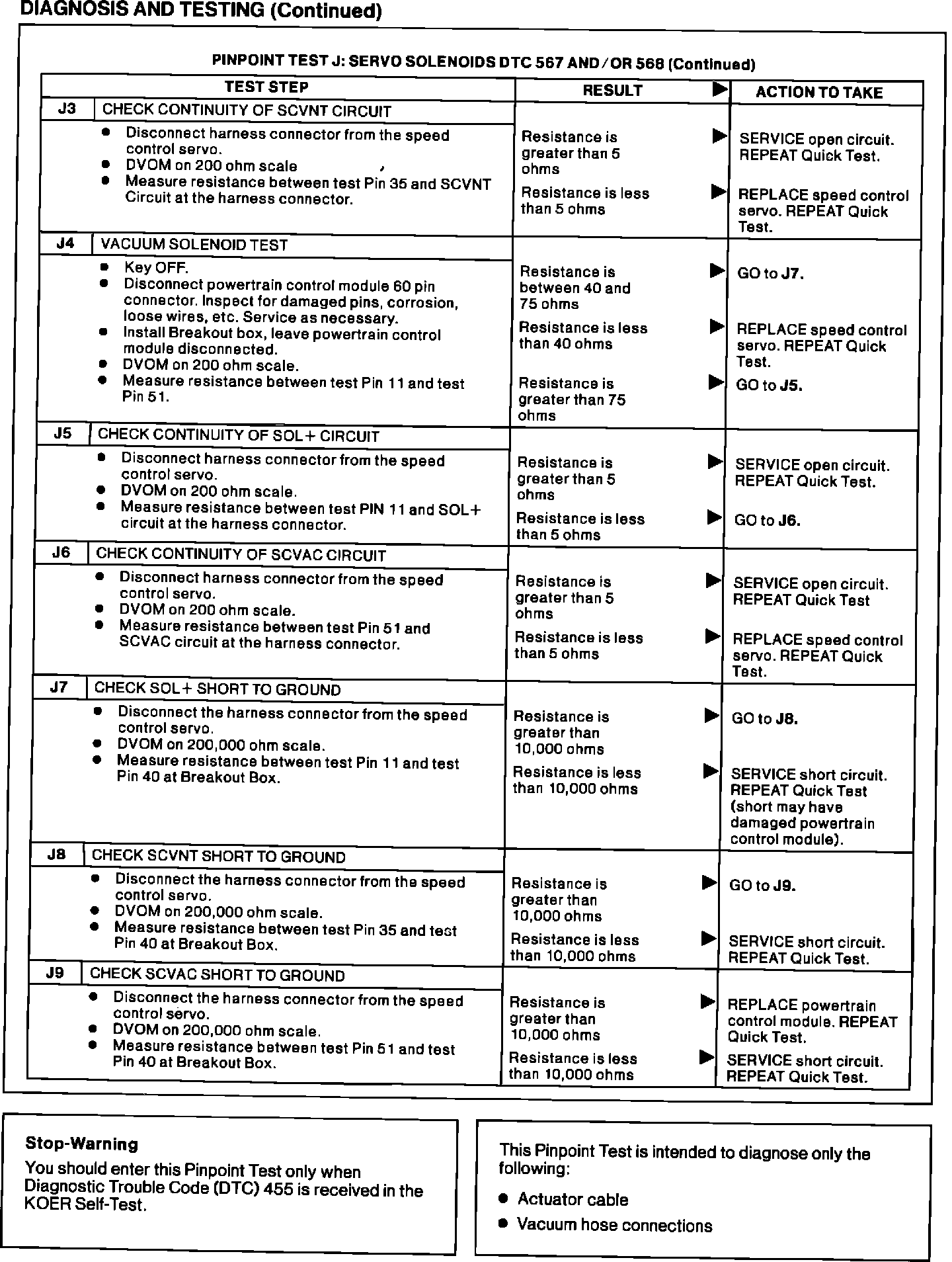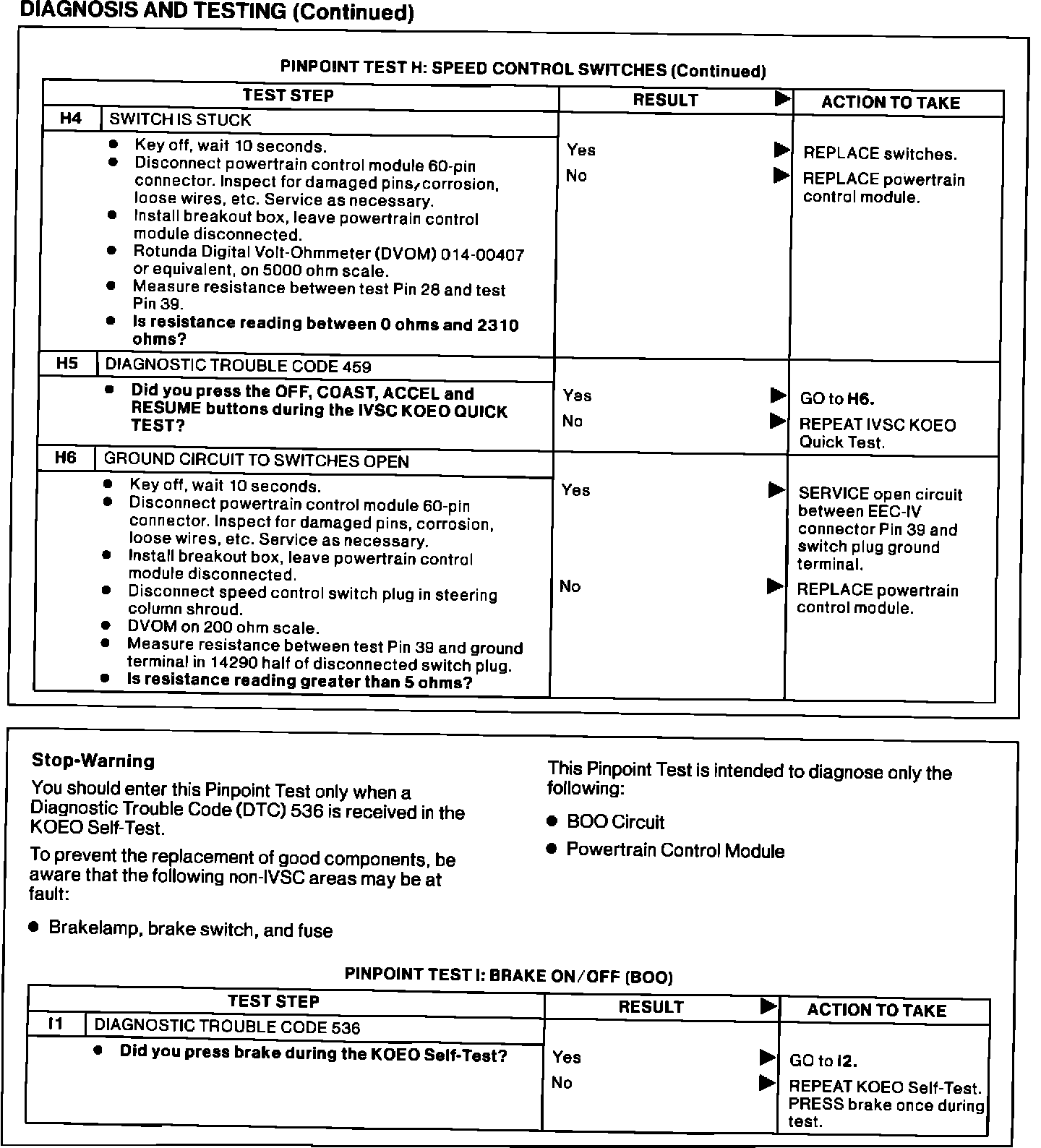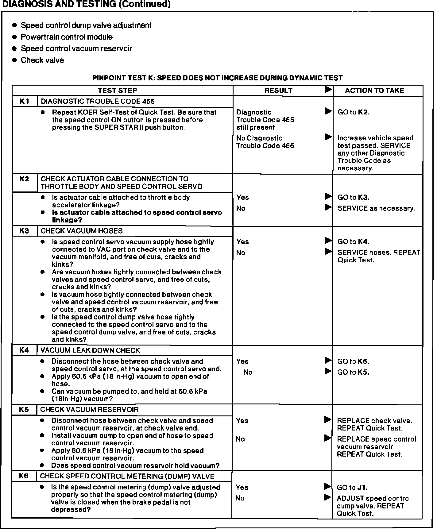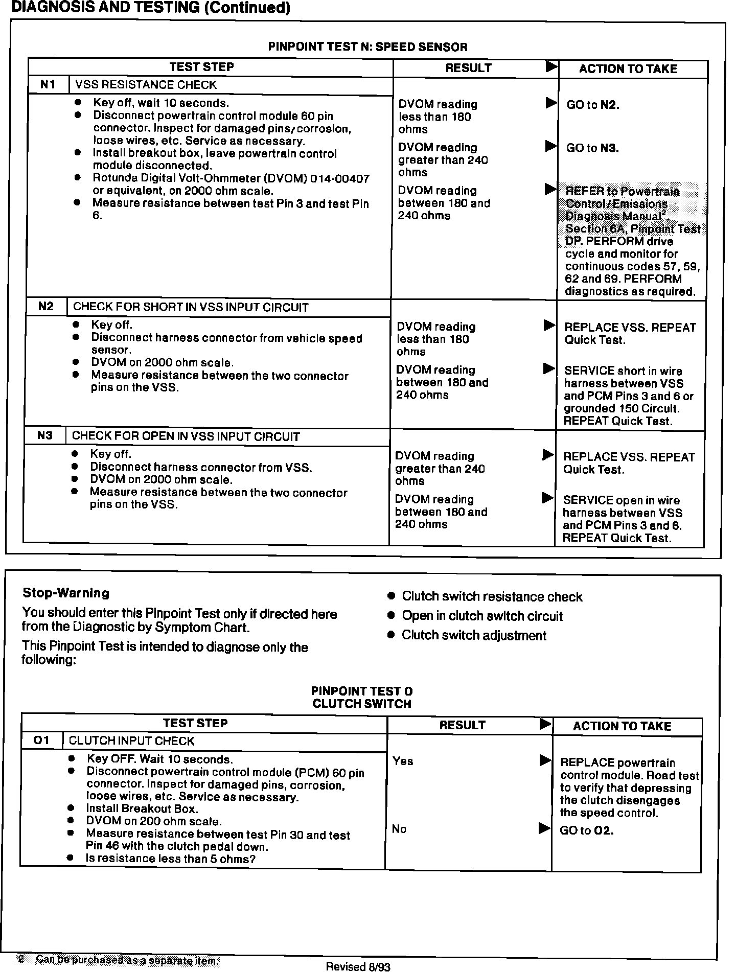 ^ SERVICE MANUAL - 1993 - PAGES 10-03A-25 AND 10-03A-32 - SPEED CONTROL "DIAGNOSTIC BY SYMPTOM" CHART AND PINPOINT TEST STEP G1 REVISED