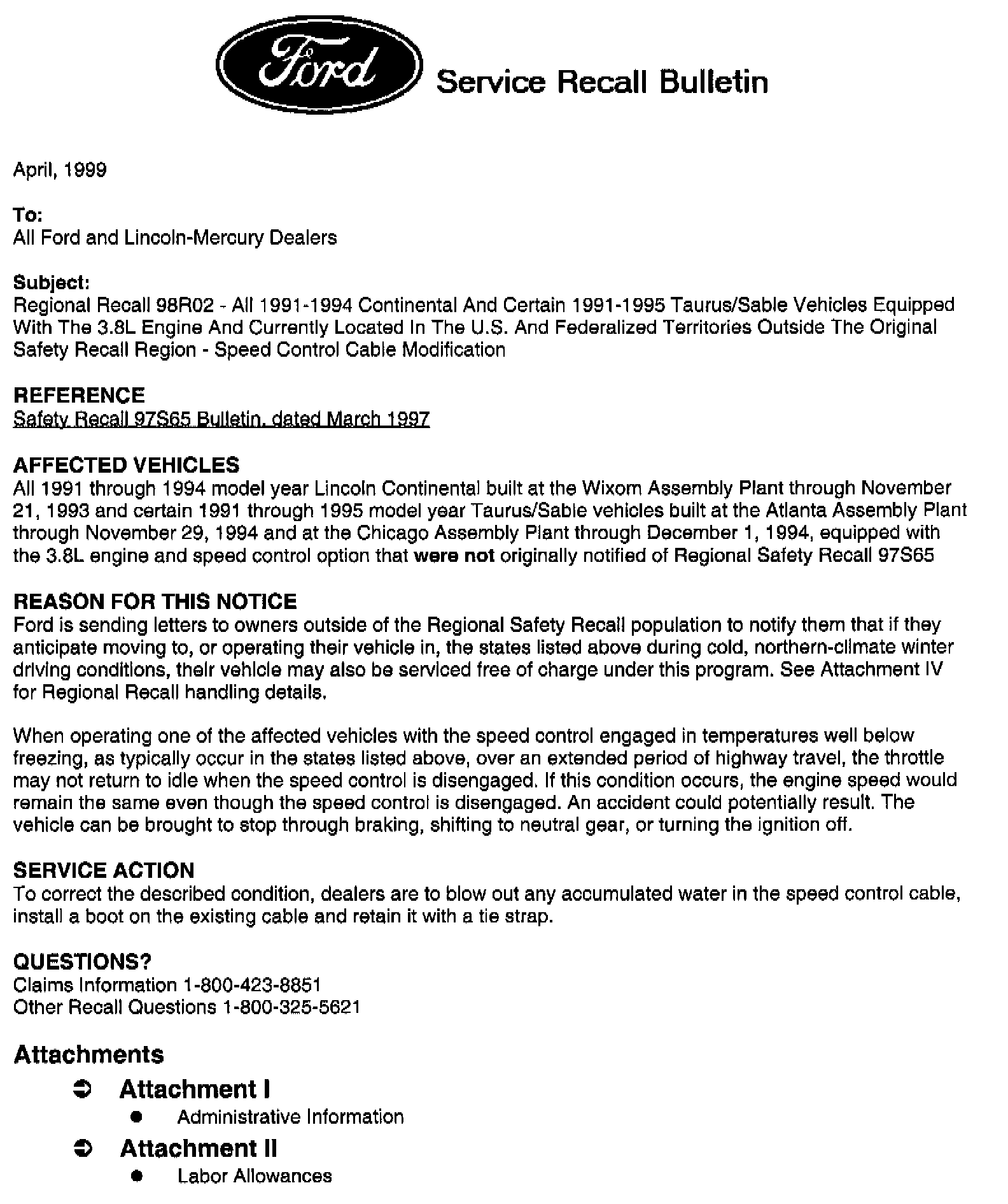 Recall - Speed Control Cable Modification
