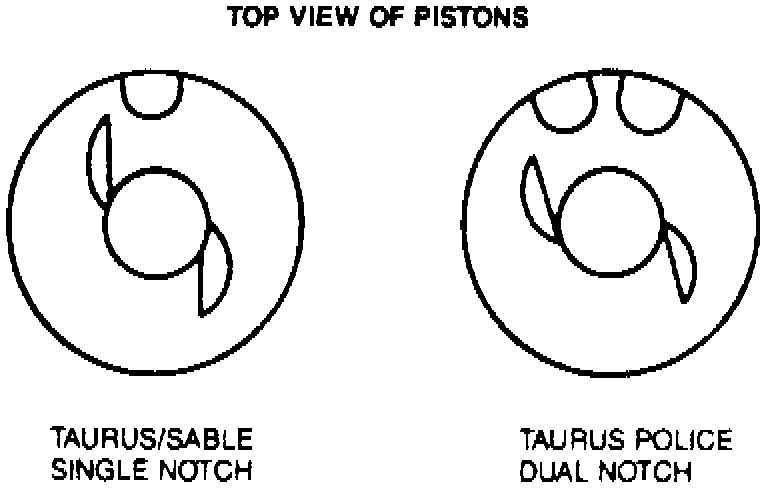 NOTE: Police model engines contain pistons with a special high silicone alloy. They are identified with two notches on top of the piston.
