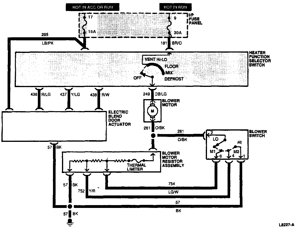 b. One internal single-pole electrical switch is also controlled by the selector. The internal electrical switch controls the electrical supply to the heater blower motor switch.