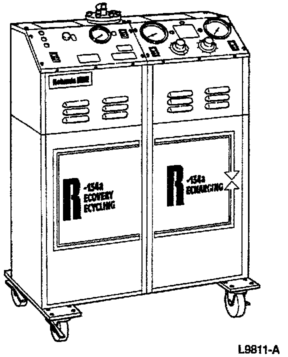 SYSTEM CHARGING SET-UPNOTE: It is recommended to use a charging station to perform the evacuation and the charging of the refrigerant system. Follow the instructions provided with the charging station. If a charging station is not available, the system charging may be accomplished using a separate vacuum pump, charging cylinder, scale, and manifold gauge set. The use of small cans of refrigerant is NOT recommended.
