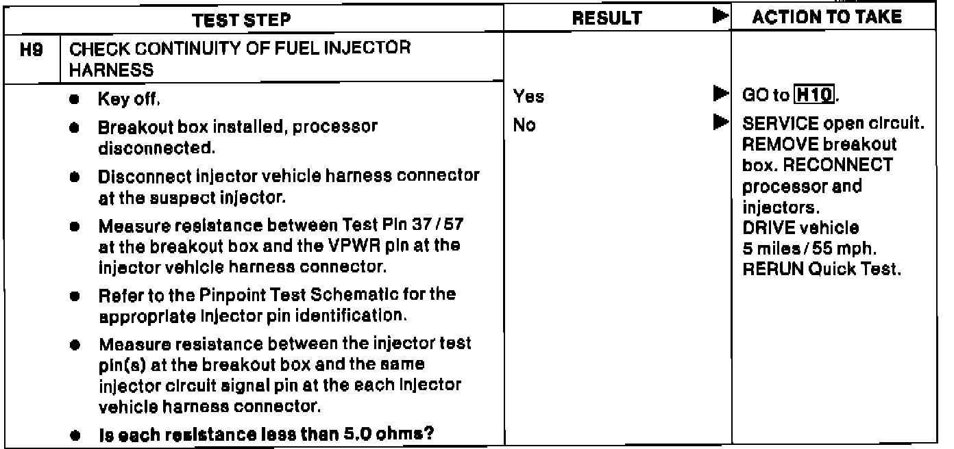 H9 - Check Continuity of Fuel Injector Harness
