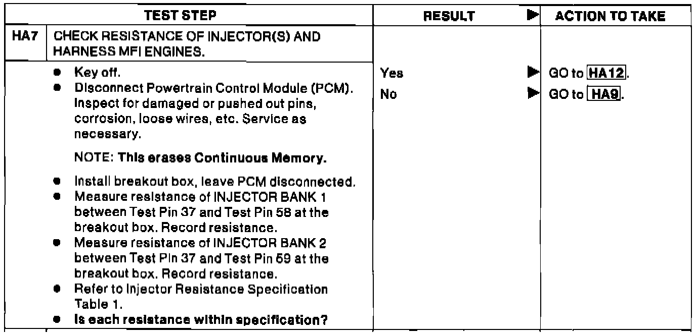 HA7 - Check Resistance of Injector(s) and Harness - MFI Engines