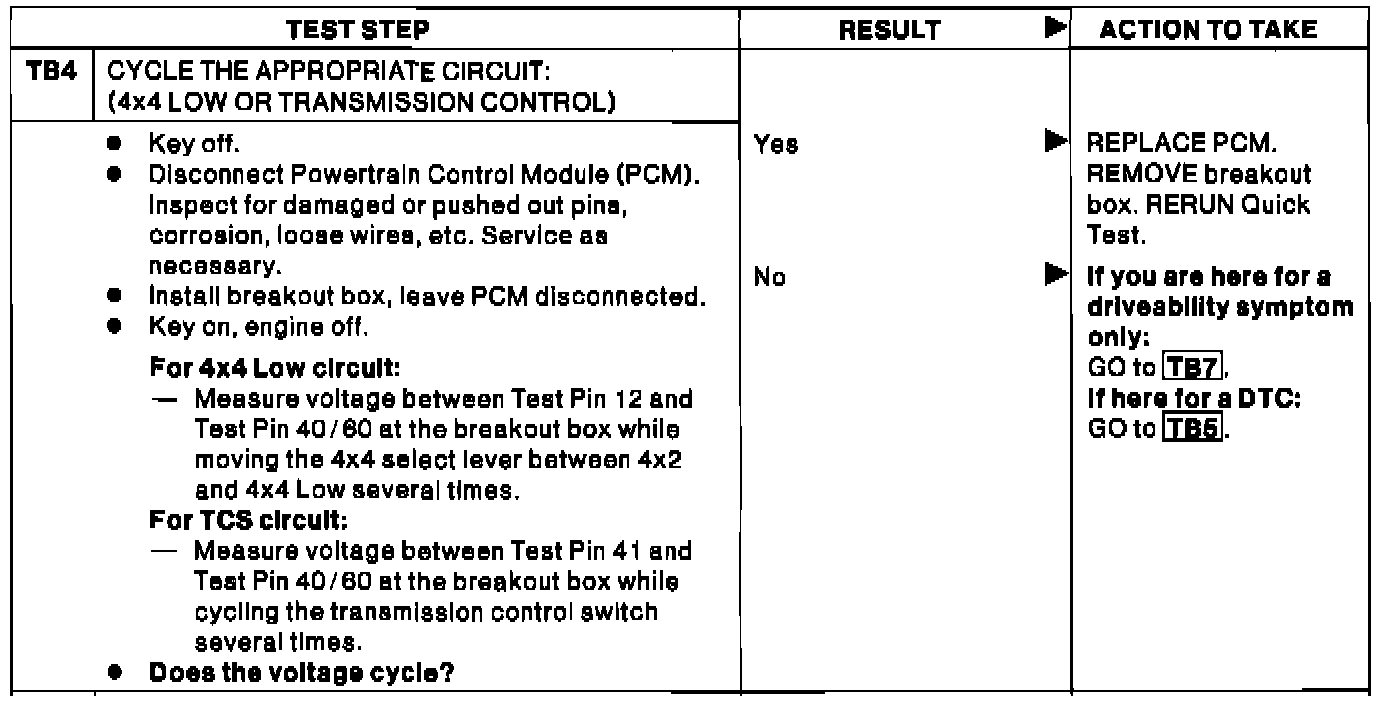 TB4 - Cycle the Appropriate Circuit: (4X4 Low or Transmission)