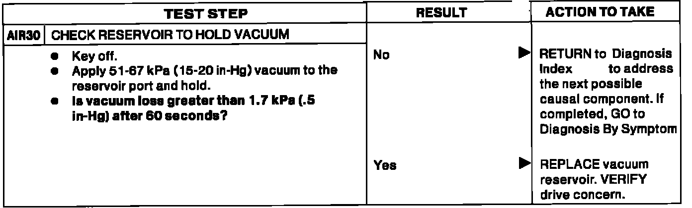 AIR30 - Check Reservoir To Hold Vacuum:
