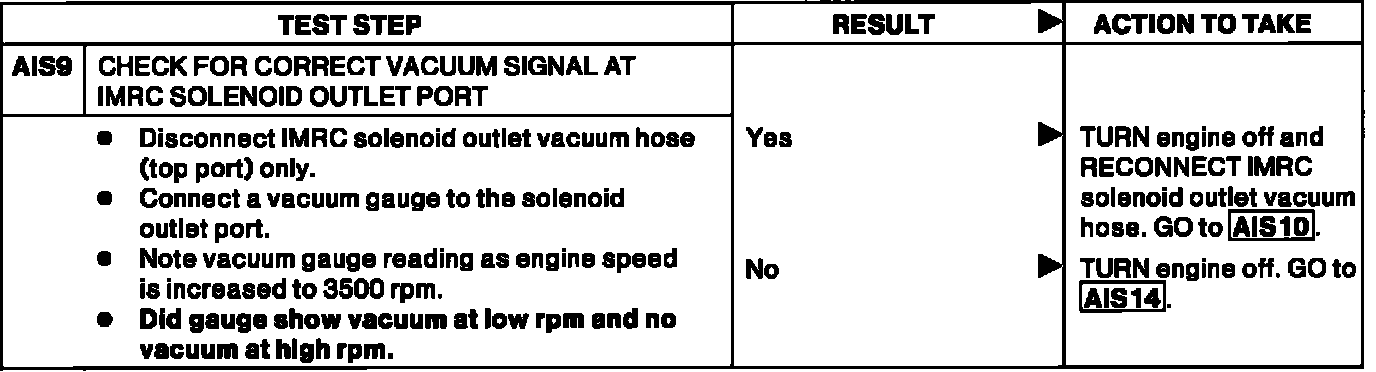AIS9 - Check For Correct Vacuum Signal At IMRC Solenoid Outlet Port: