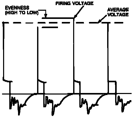 ^ The average value of spark plug firing voltage: 15 KV or less with evenness of spark plug firing voltage: 5 KV or less.
