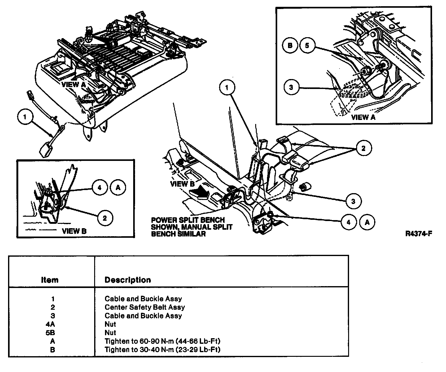 2. Tighten all attaching bolts to 30-40 N.m (23-29 lb-ft). Cycle system several times to ensure proper operation of retractor. Make sure belt is not twisted.