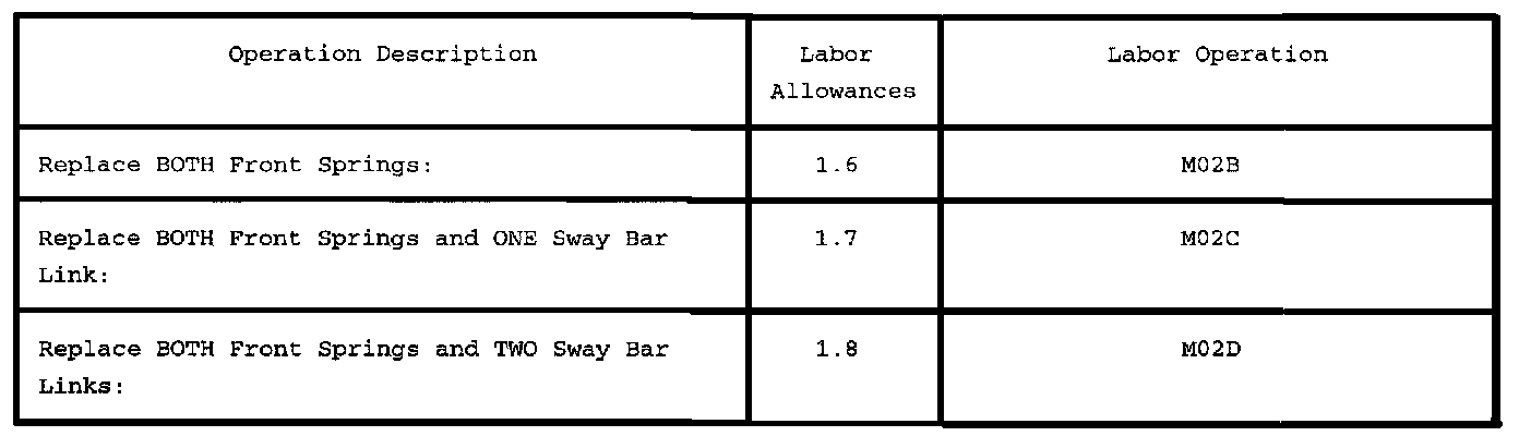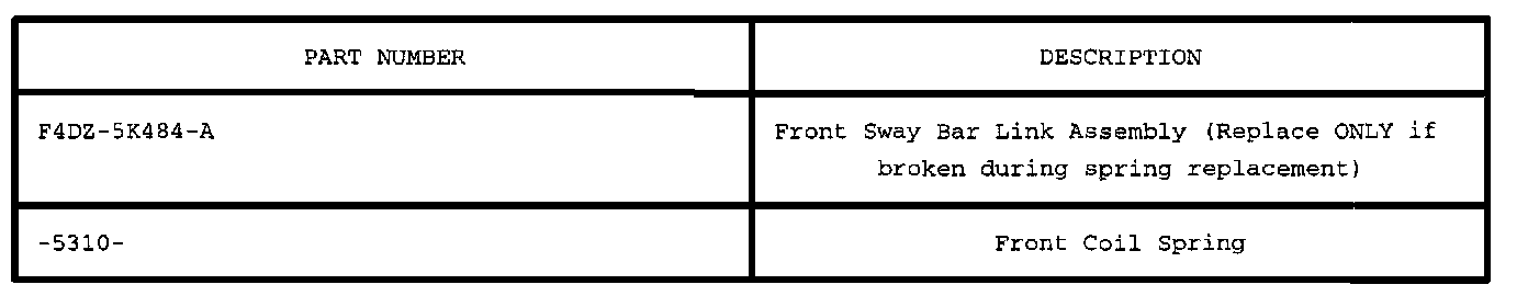 Refer to parts catalog. Springs must be ordered using proper vehicle spring codes as identified on the vehicle certification label. Use this code to select the proper spring service part number from the application charts which are sequenced by spring code.