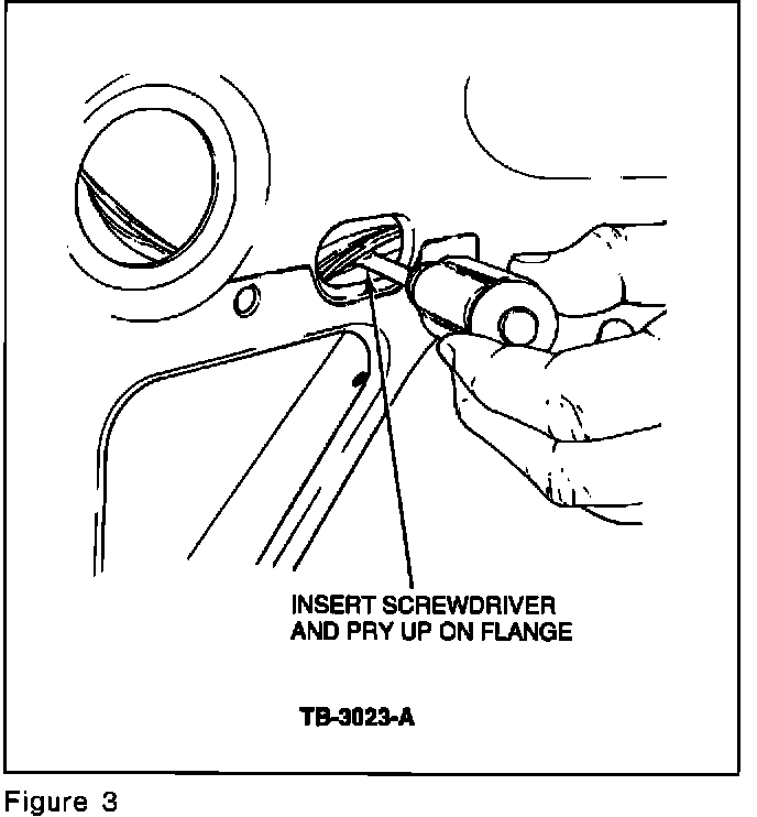 a. Insert a flat bladed screwdriver underneath the weld flange and pry the flange up about 1/4" (6.35 mm), away from the sheet metal below, to stop the contact between the two. See Figure 3.