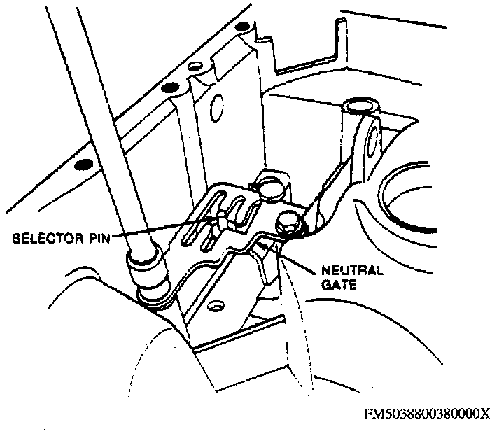 10. Verify selector pin is in neutral gate of control selector plate, and finger of fork selector arm is partially engaged with 1-2 and 3-4 forks.