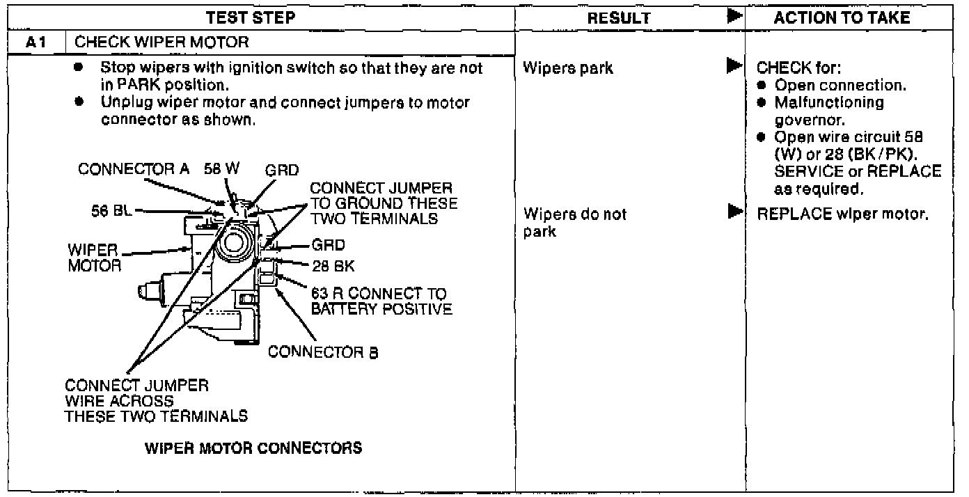 Fig. 33 Diagnostic Pinpoint Test A, Wipers Will Not Park. Thunderbird/Cougar, Mustang, Tempo/Topaz: