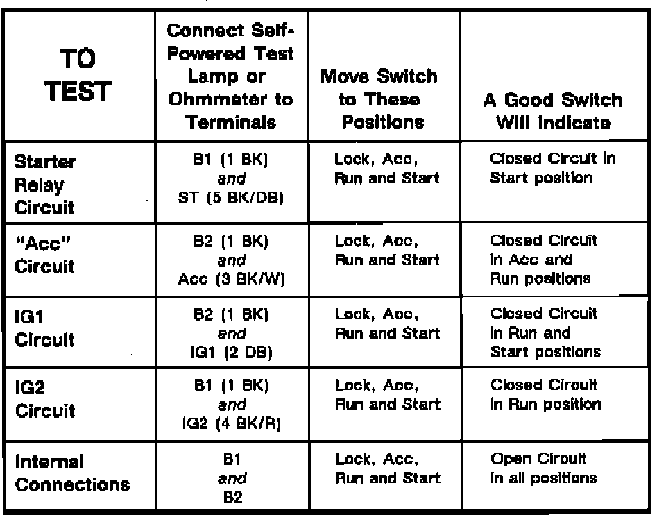 Ignition Switch: Testing and Inspection