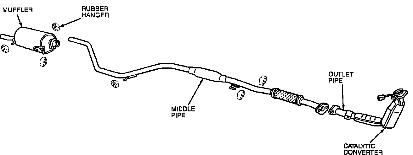 7. Position the catalytic converter and install a new gasket between the catalytic converter and the middle pipe.