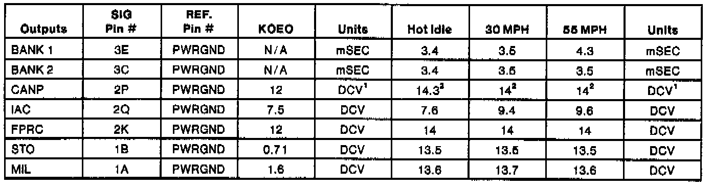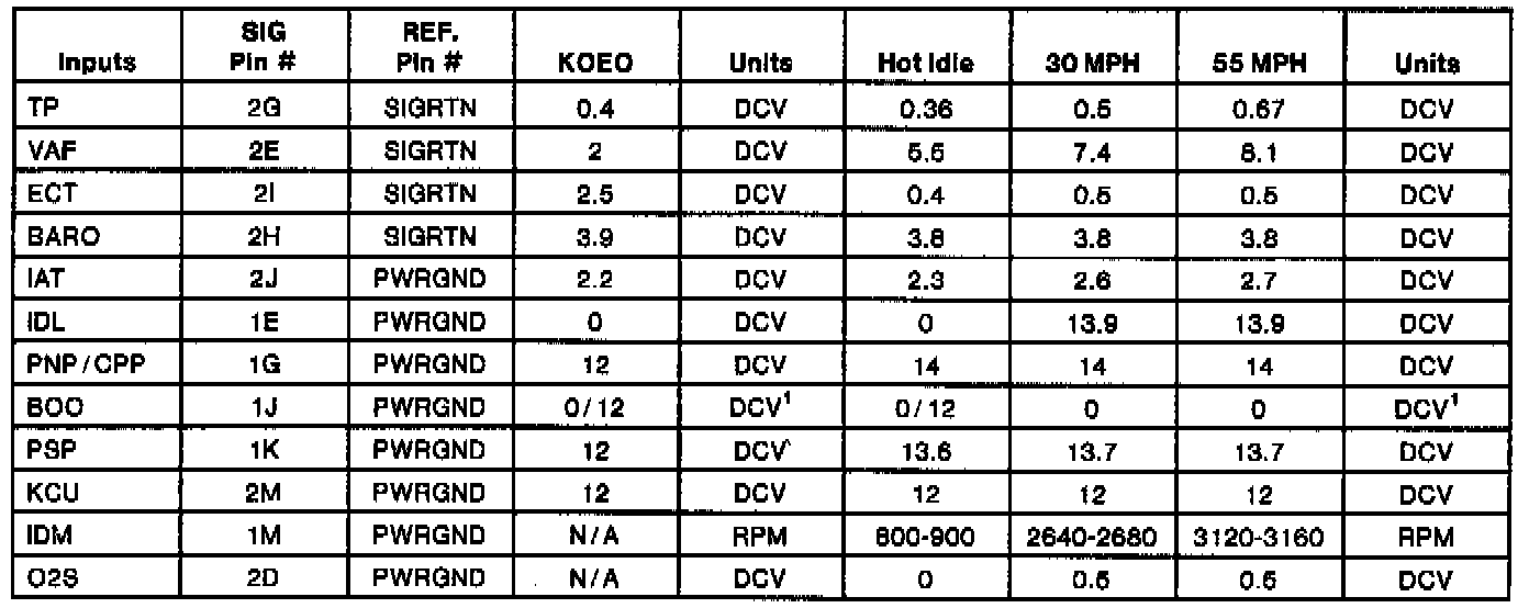 NOTE: Reference values shown may vary approximately +/- 20 percent depending on operating conditions and other factors.