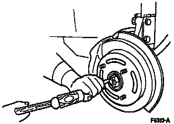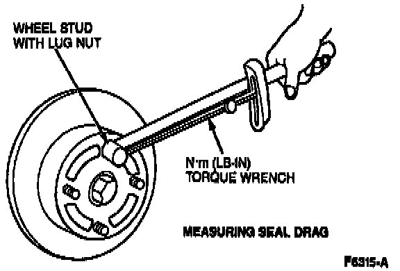 To measure seal drag, place a N.m(lb-in) torque wrench onto a lug nut positioned at 12 O'CLOCK and measure the amount of force required to ROTATE the brake rotor. PULL the torque wrench and note the reading when rotation STARTS.