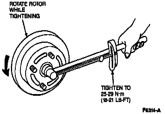 9. Seat the bearings by tightening the locknut to 25-29 N.m (18-21 lb-ft). While tightening the locknut ROTATE the brake rotor.