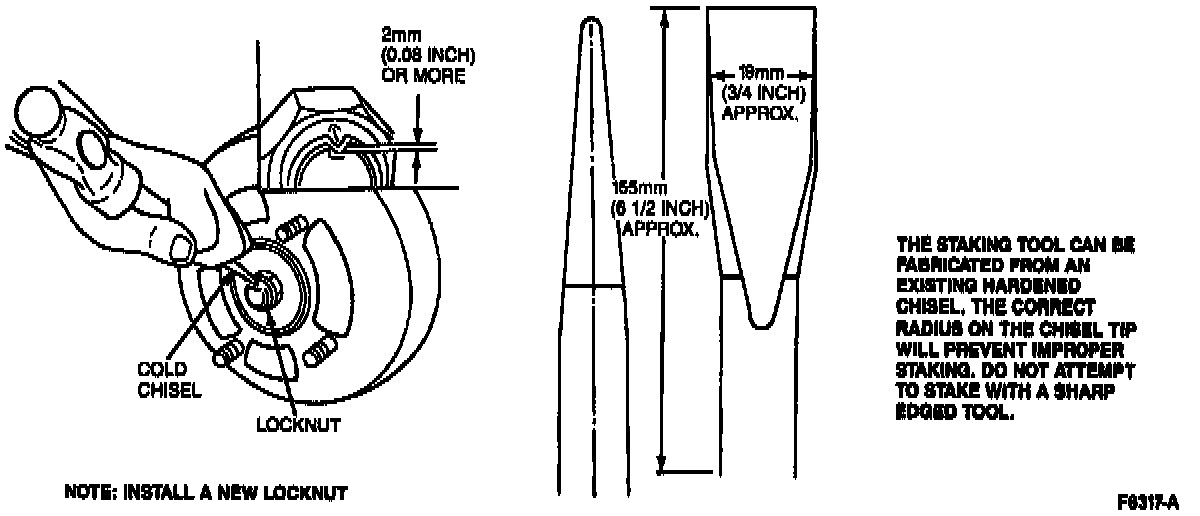 15. Stake new locknut using a cold chisel with the cutting edge rounded as shown.