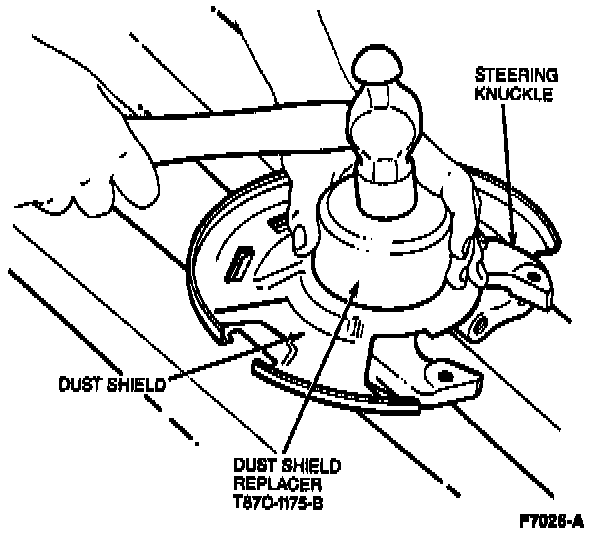 2. If removed, install the dust shield on the steering knuckle using Dust Shield Replacer T87C-1175-B.