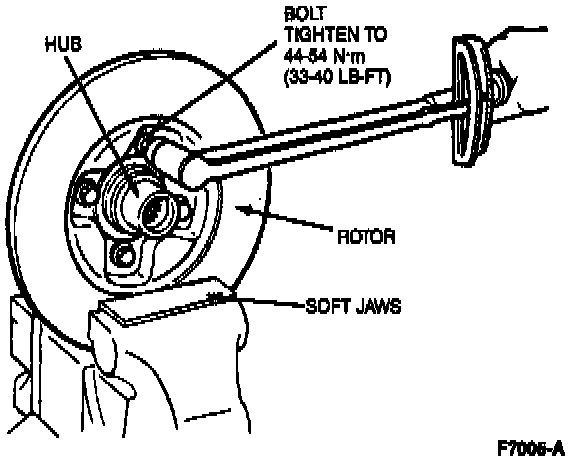 10. Position the hub on the rotor and install the retaining bolts. Be sure the index marks on the hub and rotor align with each other. Tighten the retaining bolts to 44-54 N.m (33-40 lb-ft).